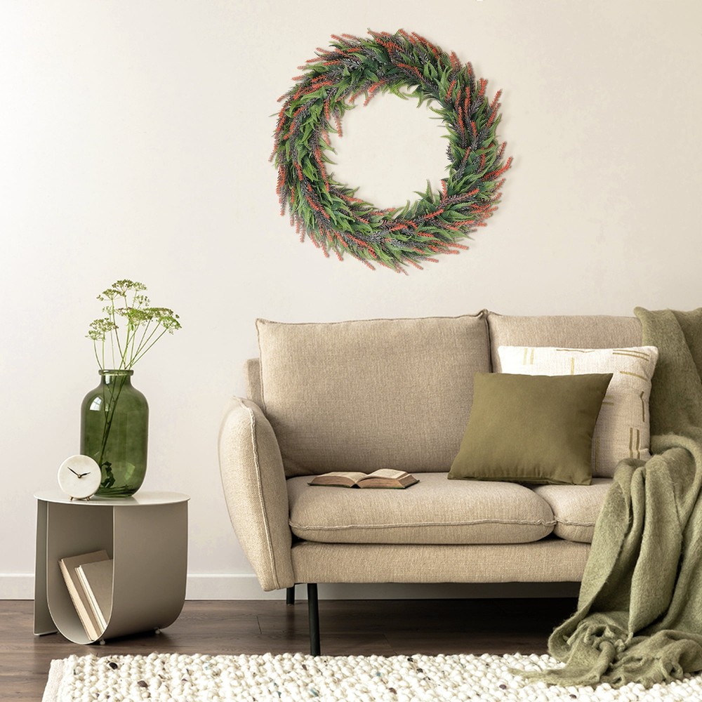 Absolutely love this wreath! The rich purple color adds a warm, elegant touch to my front door all year round. It looks so natural and fresh—exactly as pictured. Even though it needed a little fluffing after shipping, it was super easy to shape. The slight variations in the decorations give it a charming handmade feel. Perfect for anyone who wants a stylish, hassle-free decoration!
