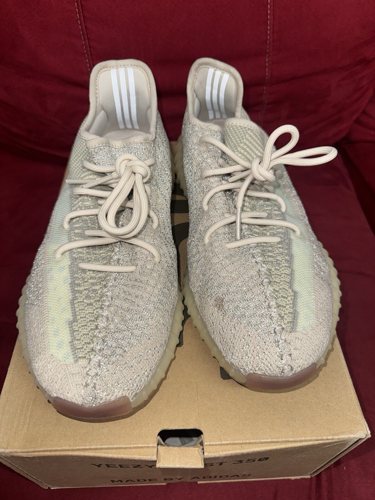 Shoes have been worn/used, but are in solid 8/10 condition. Box has slight damage, but nothing major. Shoes have also been authenticated by GOAT. This is the REFLECTIVE VERSION/PAIR.