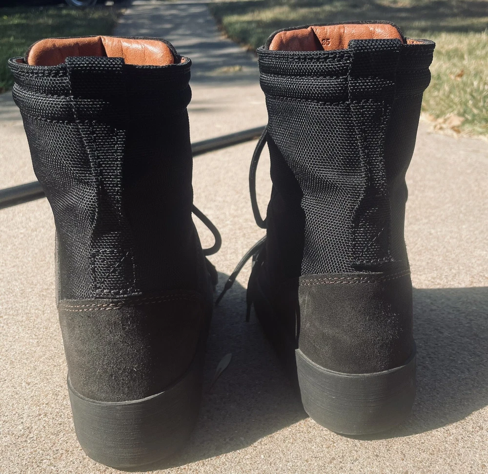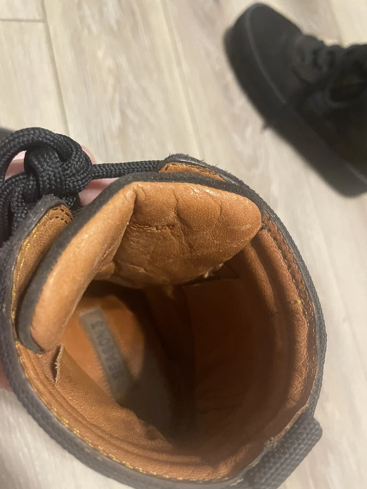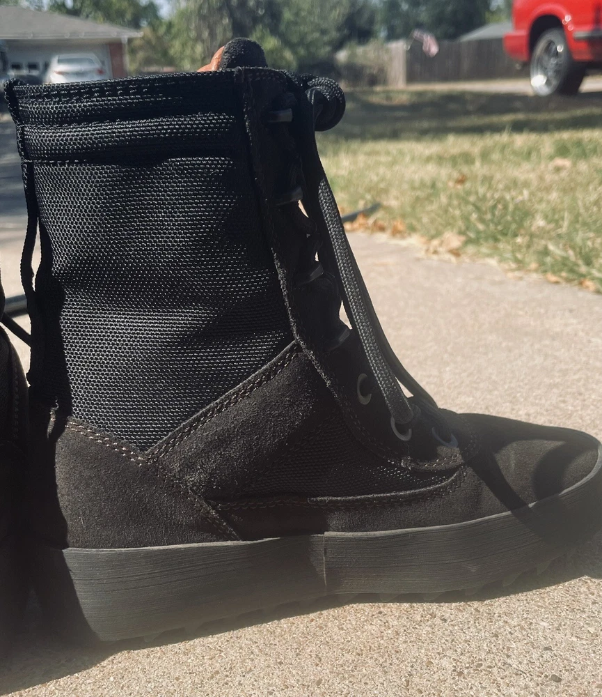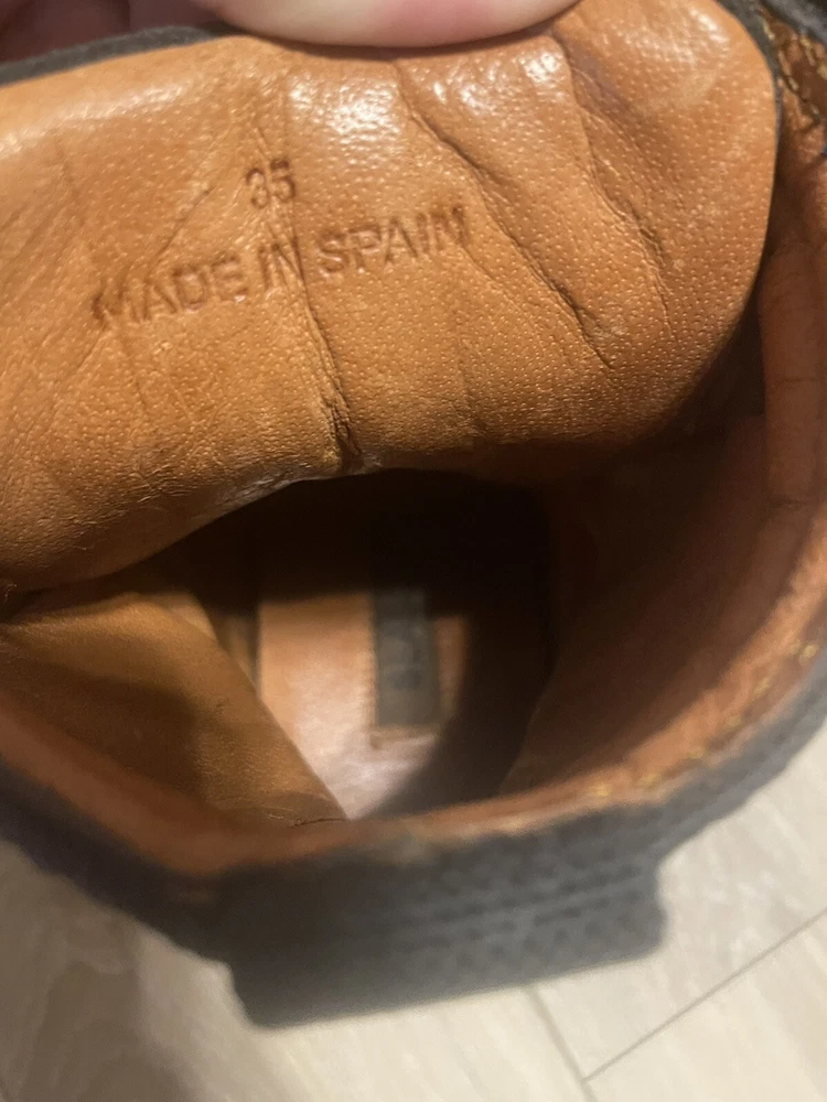 These 3rd season combats are so sturdy and in excellent condition. Made in Spain of the highest quality leather and suede. The foot and ankle area are totally reinforced. These have superior traction on the bottom. So many features. Don’t hesitate to ask questions.