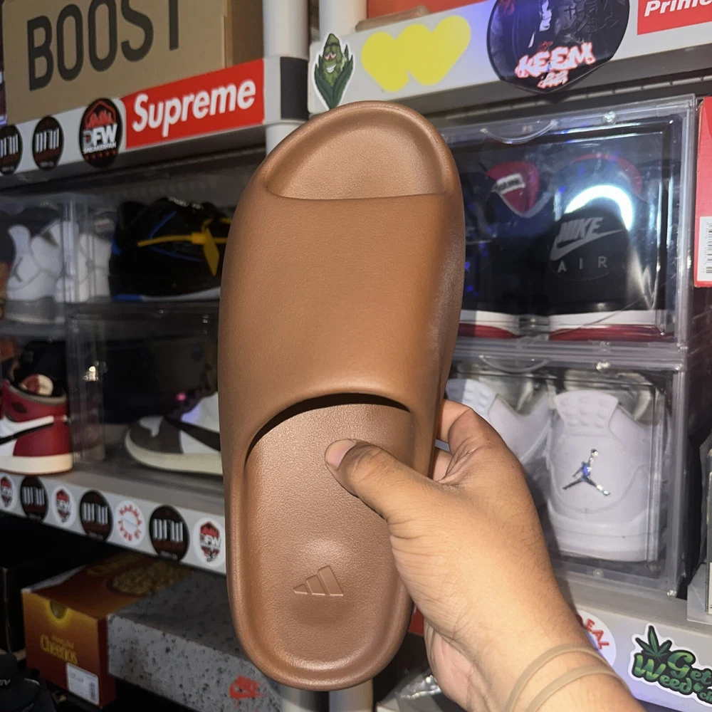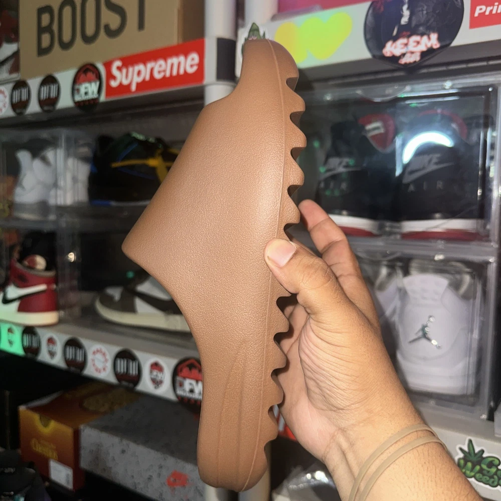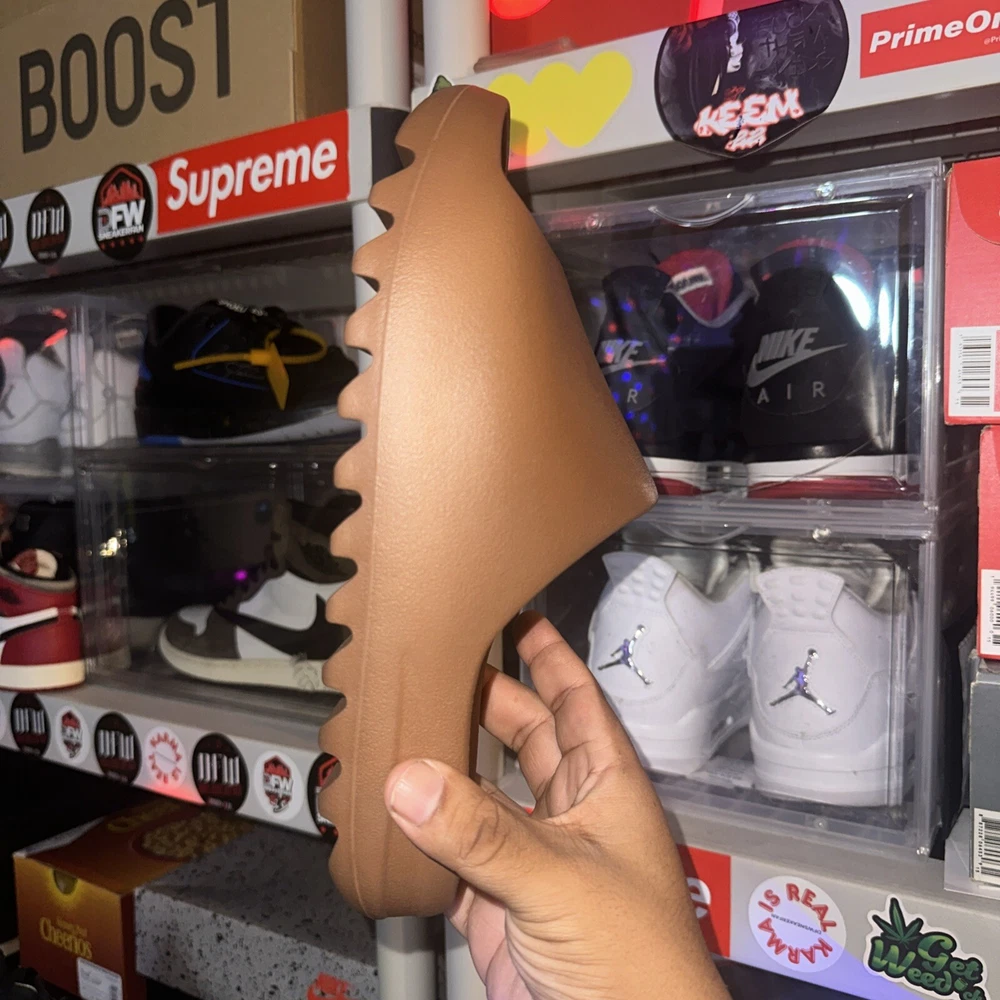 Elevate your sneaker game with these Yeezy Slide Flax in size 10. The brown flax upper material is perfect for any athletic look. These sneakers are designed for men and are perfect for any casual or athletic occasion. The Yeezy brand is known for its unique and stylish designs, and these sneakers are no exception. With a comfortable fit and trendy design, these Yeezy Slide Flax sneakers are a must-have for any sneakerhead. The sneakers are categorized under Athletic Shoes, Men's Shoes, Men, and Clothing, Shoes & Accessories. The Yeezy Slide Flax model is perfect for anyone looking for a stylish and comfortable sneaker. DS - OG ALL