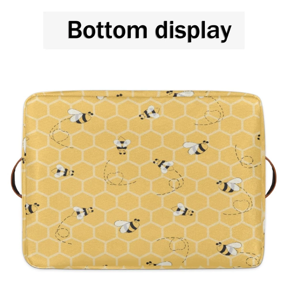 This cute bee-themed storage bin is perfect for keeping toys, clothes, or blankets organized! The sturdy polyester fabric holds up well, and the compact size fits anywhere—bedroom, nursery, or playroom. Easy to clean and super versatile, it adds a fun honeycomb touch while keeping clutter under control. Love how practical and adorable it is!