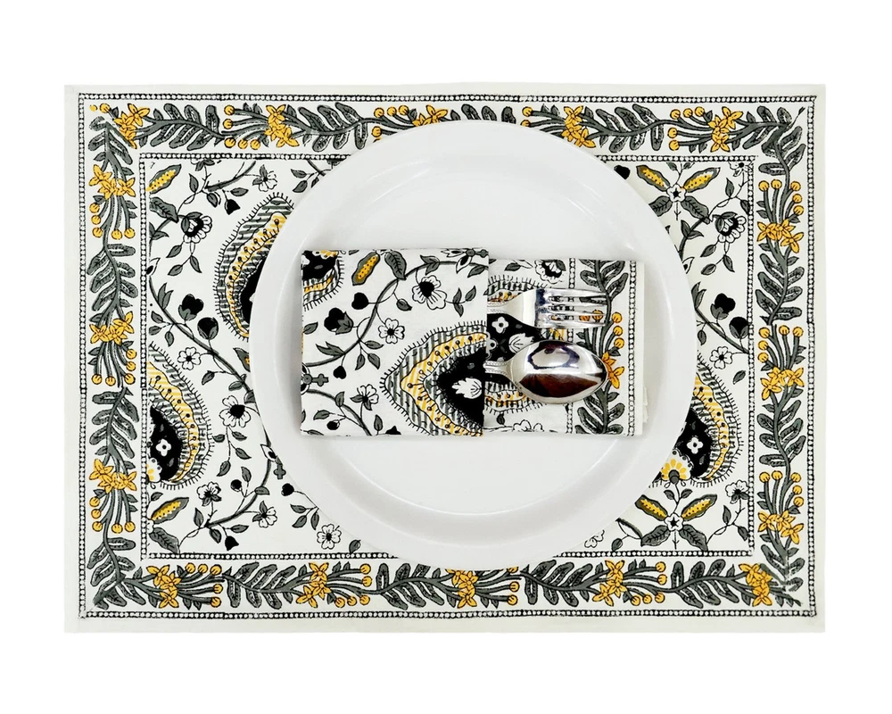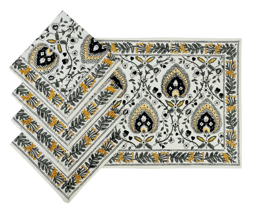 $ 20.65Yellow and gray Indian hand-block printed cotton napkins