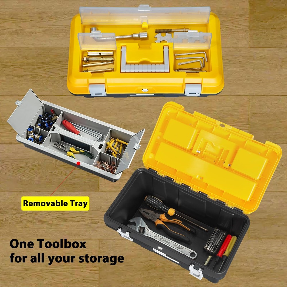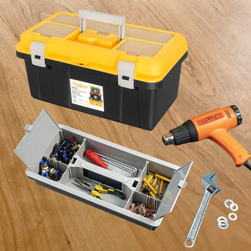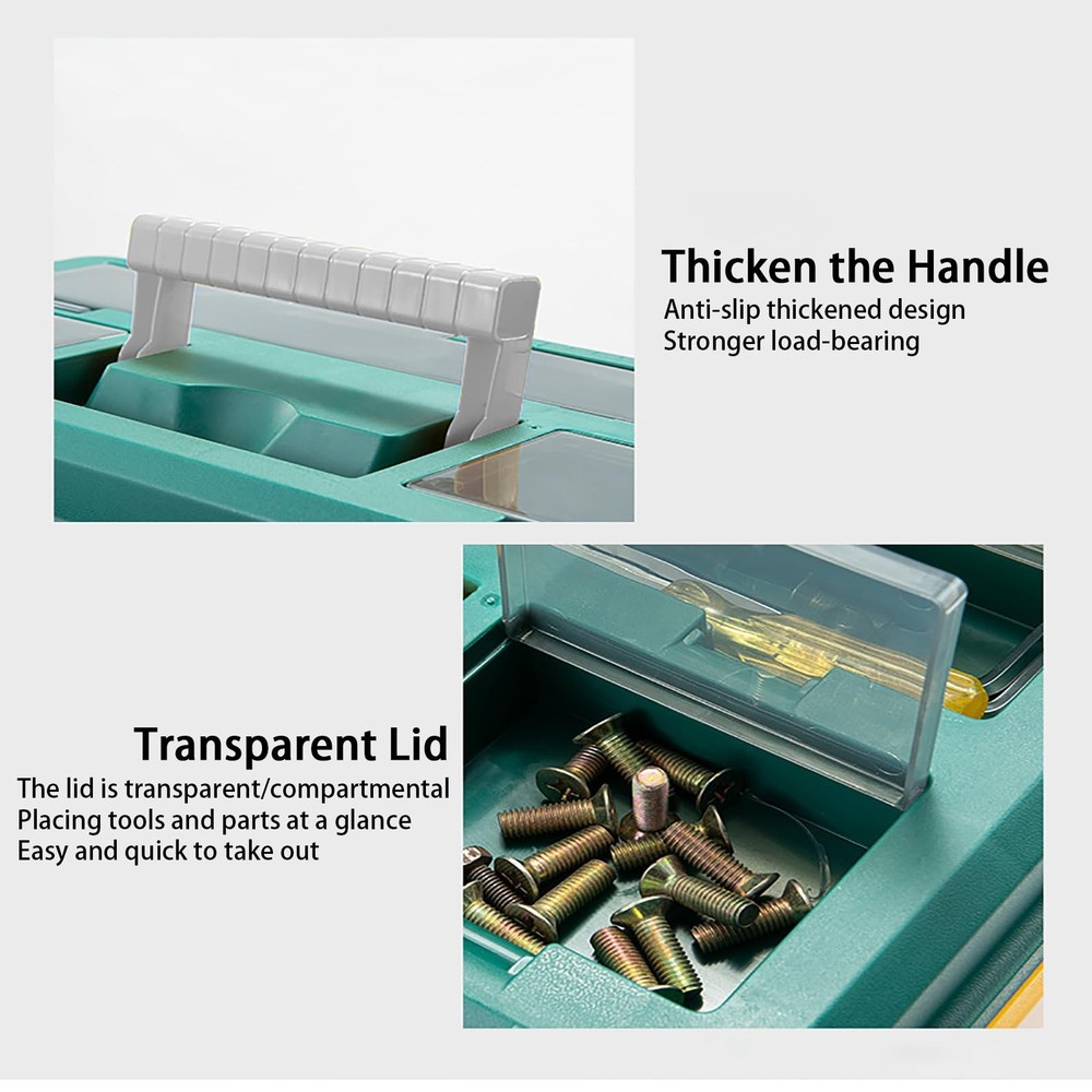 Portable and Durable: Our hand-held tool chest is designed for Lightweight, and convenience, and is built to last, making it perfect for professionals and DIY enthusiasts alike. Efficient Storage Solution: With its internal portable tray and smart storage design, our tool chest provides a well-organized space for all your tools, keeping them easily accessible and preventing clutter. Ample Storage Capacity: Our tool chest offers a larger storage capacity, allowing you to store a wide range of tools and accessories, ensuring you have everything you need for any task. Versatile and Practical: Whether you need to carry it to a construction site, fix something at home, or organize your tools in the garage, our portable tool chest is your reliable companion, providing convenience and efficiency. Stylish Design: Featuring a sleek and simple design, this toolbox is both functional and fashionable, adding a touch of style to your workspace. 🔨Portable and Durable: Our hand-held tool chest is designed for Lightweight, and convenience, and is built to last, making it perfect for professionals and DIY enthusiasts alike. 🔩Efficient Storage Solution: With its internal portable tray and smart storage design, our tool chest provides a well-organized space for all your tools, keeping them easily accessible and preventing clutter. 📐Ample Storage Capacity: Our tool chest offers a larger storage capacity, allowing you to store a wide range of tools and accessories, ensuring you have everything you need for any task. 🔧Versatile and Practical: Whether you need to carry it to a construction site, fix something at home, or organize your tools in the garage, our portable tool chest is your reliable companion, providing convenience and efficiency. 🎁Stylish Design: Featuring a sleek and simple design, this toolbox is both functional and fashionable, adding a touch of style to your workspace.