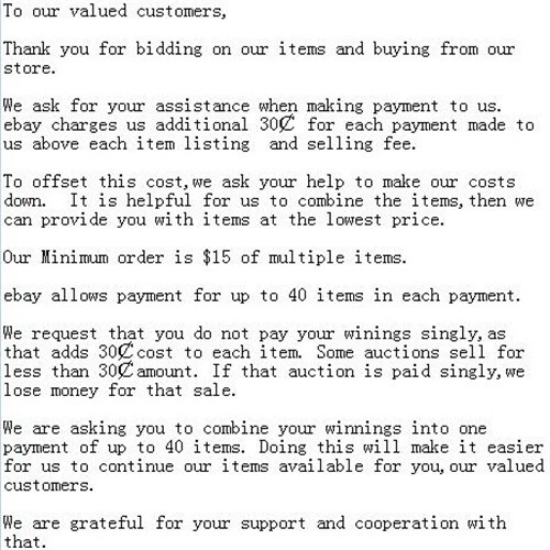 Note: it is hard to keep everyone is same,so these may happen: The size & weight of everyone always is different,it's normal for the difference. The color may also have some difference with the product,it is normal. The pictures often look larger than real product,pls refer the product size. If you mind these,pls don't place an order,thank you for your assistance! Shipping 1.All The Items Will Be Shipped Out To You in Time(1-3 Work Days For Overseas Warehouse,1-7 Work Days For China Warehouse). 2.If You Have Not Received Your Item After Estimated Delivered Days, Please Do Not Hurry To Open Case To Us. 3.We Would Recheck The Shipping Status For You And Decide Refund Or Something in Your Request. Return 1.If You Are Not 100% Satisfied With Your Item We Will Gladly Accept It Back For A Full Refund Provided Your Initial Request To Return The Item is Within 30 Days From The Date Of Purchase. If Your Initial Request To Return The Item is After 30 Days From The Date Of Purchase Unfortunately We Would Be Unable To Accept The Return Request. 2.All Returns Must Be Received in Perfect Resalable Condition in Order For Refunds To Be Granted. If The Item YouReturn Does Not Arrive in Perfect Resalable Condition We Cannot Offer Any Refund. 3.All Returned Items Must Be Include a Copy Of The Original Sales Invoice.Once Your Item Has Been Returned To Us, Your Refund Will Be Processed Within 72 Hours. About Tax 1.Customs Duty is Obligation And Liability Of A Citizen in Your Country, So Buyer Should Be Responsible For AnyTax And Custom Duty Incurred. 2.Please Double Check Your Local Customs Policy Carefully Before Purchase. Or, We Will Not Be Responsible For Any Failure Delivery Related Destination Customs Issue. Contact us 1.If You Have Any Problem,Pls Feel Free To Contact With Us By Online Email First,We Will Try Our Best To Solve You Problem.We Will Provide With You The Professional Customer Service!Hope We Can Have A Good Cooperation.Best Wishes!