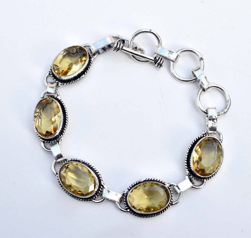 Base Metal: German Silver Charm Type: NA Main Stone Creation: Lab-Created Colored Diamond Intensity: NA Main Stone Treatment: NA Antique: No Main Stone Depth: Na Occasion: Every Occasion UPC: NA Wholesale: Yes Cut Grade: Excellent Features: NA Sizable: Yes Color: Silver Main Stone Color: Yellow Shape: Same As Picture Type: Bracelet gtin13: NA Main Stone Width: NA Diamond Color Grade: NA Material: Gemstone Main Stone: Yellow Citrine Personalize: No Diamond Clarity Grade: NA Closure: NA Main Stone Length: NA Collection: NA Handmade: Yes Seller Notes: “If You Buy 3 Items Then i will Give You 1 item Free As Gift” Style: Charm Number of Gemstones: 1 Metal Purity: 925 Parts Per 1000 Secondary Stone: No Stone Item Length: 7.8 Number of Diamonds: NA Theme: Beauty Country of Origin: India Signed: No Seller Warranty: Yes Metal: Sterling Silver Setting Style: Bezel Chain Type: NA Vintage: No Certification: NA Brand: Unbranded Main Stone Shape: Same As Picture Country/Region of Manufacture: India Total Carat Weight: Same As picture
