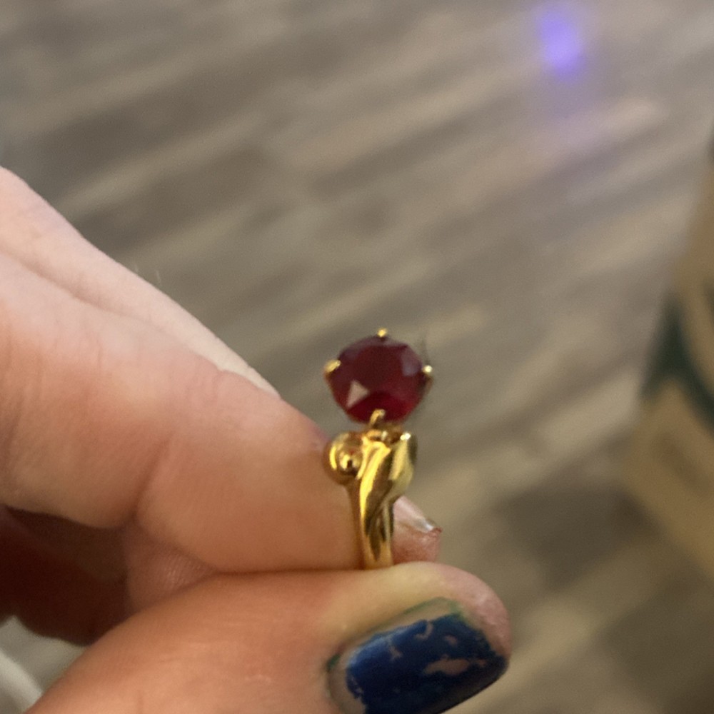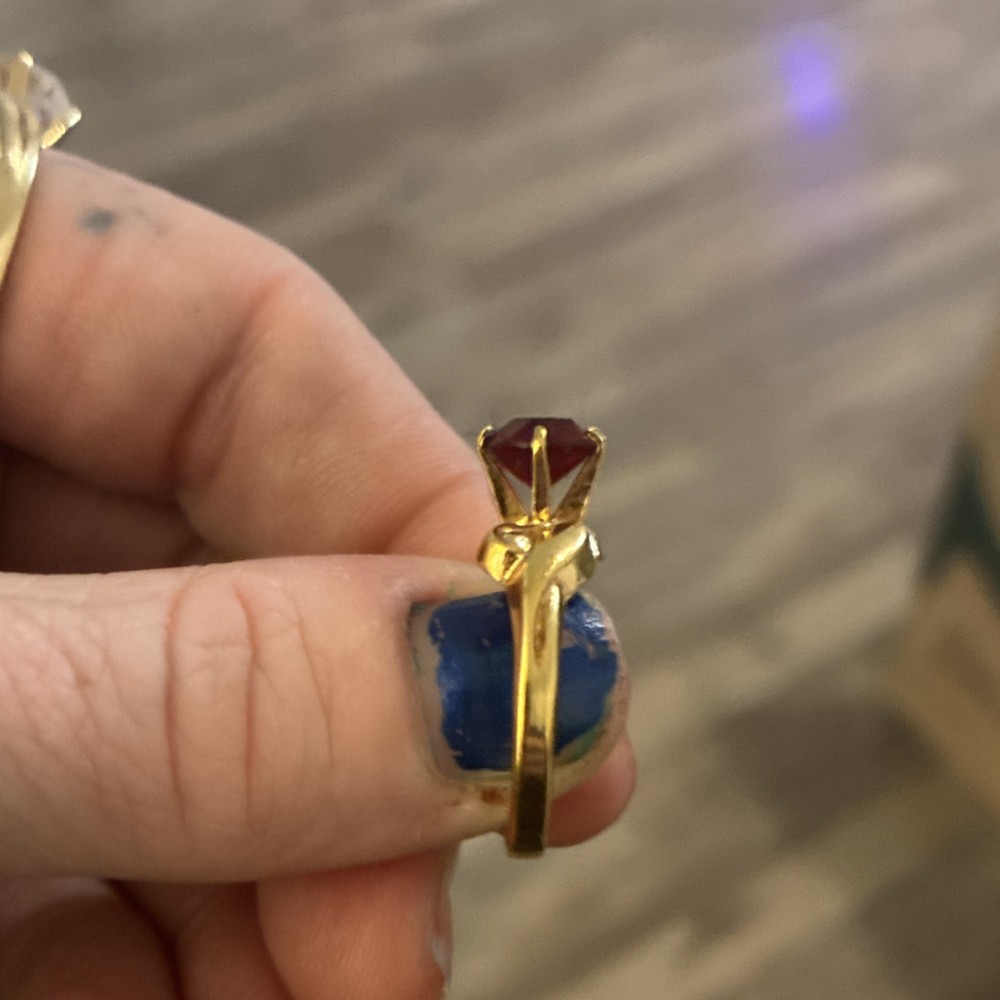 Main Stone Shape:RoundColor:Gold, RedMaterial:Metal, GemstoneBrand:UnbrandedNumber of Gemstones:1Type:RingShape:RoundMain Stone:GarnetMetal Purity:10kMain Stone Color:RedSetting Style:ProngMetal:Yellow GoldRing Size:6.5