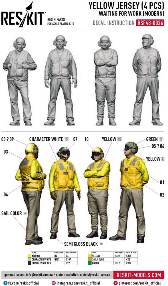 Yellow jersey waiting for work (Modern) Plane Director, Aircraft Handling Officer, Catapult and Arresting Gear Officers (4 pcs) (3D Printed) Scale 1:48 ResKit RSF48-0026 for Figurines for Aircraft Model Kit Premium Resin & 3D-Printed Upgrade for Scale Plastic Model Kits Take your scale model builds to new heights with this detailed set from ResKitβa trusted name in professional-grade accessories for plastic model kits . ResKit Premium Model Accessories β Elevate Your Scale Models with Expert Craftsmanship Upgrade Your Builds with ResKit: Discover highly detailed resin & 3D-printed accessories designed for scale plastic models . Perfect for aircraft , military vehicles , helicopters , and figures , ResKitβs precision-crafted parts bring unmatched realism to your projects. Scale: 1:48 Manufacturer: RESKIT (Accessories for Scale Plastic Kits) Model (SKU): RSF48-0026 Country/Region of Manufacture: Ukraine Condition: New in Box π¬ Need more stock? Weβve got you! Message us to customize your order quantity . As direct partners with manufacturers, we restock fast to meet your needs. π― Rapid replies assured! Available all day, with only time zones causing minor delays. π π Order Transparency We're here to help and will keep you informed on your order status. π Product Specifications Material: Resin / 3D Printed Features: Kit Kit description: Unpainted, Unassembled, Kit do not contain paints and glue Category: Resin & 3D accessories Type of equipment: Figurines for Aircraft Type of product: Figurines Recommended kit: Any / Universal Country of origin: USA Skill level: Advanced Type aircraft or vehicle: Grumman F-14 Tomcat F/A-18 Hornet/Super Hornet Lockheed Martin F-35 Lightning II Harrier Grumman A-6 Intruder Grumman EA-6 Prowler LTV A-7 Corsair II Grumman E-2 Hawkeye Grumman S-2 Tracker Lockheed S-3 Viking Sikorsky CH-53 Sea Stallion Sikorsky MH-53 Pave Low Sikorsky HH-53 Sikorsky MH-53 Sikorsky MH-60 Jayhawk Sikorsky UH-60 Black Hawk Sikorsky SH-60 Seahawk Sikorsky HH-60 Sikorsky S-70A-27 Bell Boeing V-22 Osprey ResKit is your reliable partner in the world of modeling, Enhance your projects with our accessories and parts that will take your hobby to the next level! π Why Choose ResKit? β¨ Exceptional Precision: Each component is designed to replicate the real aircraft parts with maximum fidelity. β¨ 3D & Resin Excellence: Combines cutting-edge 3D printing with traditional resin casting for superior quality. β¨ Perfect Compatibility: Seamless fit with major plastic kit brands. β¨ Expansive Range: Explore upgrades for aircraft, helicopters, vehicles & more in multiple scales. About the Reskit Brand ResKit β Premium Upgrade Parts for Scale Model Kits Enhance your model builds with ResKit β top-tier resin and 3D-printed accessories for scale plastic kits in 1:32, 1:35, 1:48, 1:72 & 1:144. Our product line includes aircraft wheels, landing gear, pylons, engines, nozzles, cockpits & weapons. Designed for realism, precision, and easy fit β perfect for aviation and military modeling enthusiasts. π But Wait, There's More! π Visit Our Full Store β Shop Now π§© See UPGRADE ACCESSORIES Products β Browse Collection βοΈ See All ResKit Products β Browse Collection π Take Your Scale Modeling to the Next Level! Step into the extraordinary world of scale modeling with our premium selection of scale model accessories , crafting supplies, and tools. Whether you're a seasoned modeler or just starting, we offer everything you need to create lifelike replicas of automobiles, aircraft, ships, and trains. Elevate your projects with: π¨ Miniature Components for added realism. π οΈ Precision Tools to craft every detail flawlessly. π‘ Supplies designed to unleash your creativity. Let your imagination soar with the best in scale model craftsmanship! π Customer Support: Fast response times Friendly service & custom order assistance Need multiple items? Message us β we can adjust quantity or restock quickly! π About Us ποΈ We provide a wide selection of 100% brand-new products at competitive prices βdirect from manufacturers to you. π¬ Need help? We're always here to assist you! βοΈ Enjoy a simple, secure, and worry-free shopping experience. π³ Payment π΅ All eBay payment methods accepted, giving you convenience and flexibility. π‘οΈ Transactions are protected by eBayβs Buyer Protection Program for your peace of mind. π Shipping Details βοΈ Fast & Reliable Shipping : Orders are shipped via trusted airmail services and delivered by your national postal service. π¦ Tracking Included : Monitor your package every step of the way. Shipping from Ukraine . Estimated delivery: 10β25 days . Handling time: 1β5 business days . π Shipping Discounts π° Save more with combined shipping discounts ! 50% off shipping for each additional item. π§ Request an invoice before payment for an updated total. π Hassle-Free Returns π Not satisfied? No worries! β Refunds issued promptly upon receipt of the item in its original condition. π― Shop with confidence and craft your perfect models today!