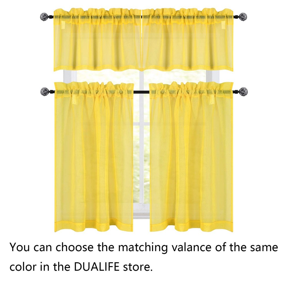 gtin13: 0695510226622 Unit Count: 2.0 Color: Yellow Hanging Rod Style: Mission Brand: Dualife Opacity: Semi-Sheer UPC: 695510226622 Package Dimensions LxWxH: 8.27x6.81x0.04 Inches Weight: 0.39 Pounds Included Components: 2 Panels Closure Type: Tie Material: Polyester Item Display Weight: 150.0 Recommended Uses For Product: Indoor Curtain Pleat: Versatile Lining Description: Unlined Curtain Form: Drapes Customer Package Type: Standard Packaging Part Number: Dl-Qdldl-13-Yellow-34X36 Room Type: Laundry Room, Bathroom, Kitchen Weave Type: Sheer Weave Or Plain Weave Model Name: Yellow Short Sheer Kitchen Curtains Theme: Art EAN: 0695510226622 Pattern: Solid Type: Does not apply Seasons: All Season Model Number: Dl-Qdldl-13-Yellow-34X36 Care Instructions: Machine Wash Specific Uses For Product: Privacy Curtain Hanging Method: Rod Pocket Safety Warning: Keep Away From Fire Or High Heat During Washing And Usage. Scent: Unscented Top Style: Rod Pocket Style: Modern Size: 34"W X 36"L (Pack Of 2) Indoor Outdoor Usage: Indoor Number Of Boxes: 1 ISBN: 0695510226622 Item Shape: Rectangular Fabric Type: Textured Linen Look Polyester Target Gender: Unisex