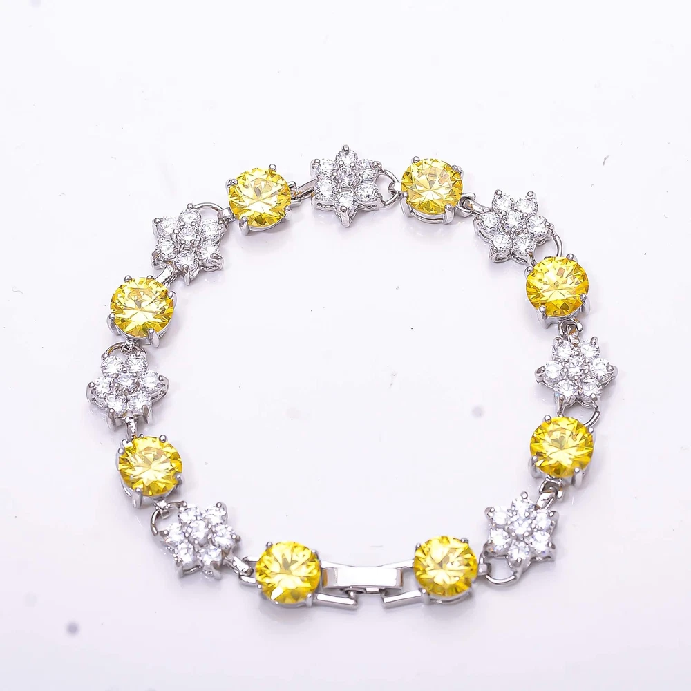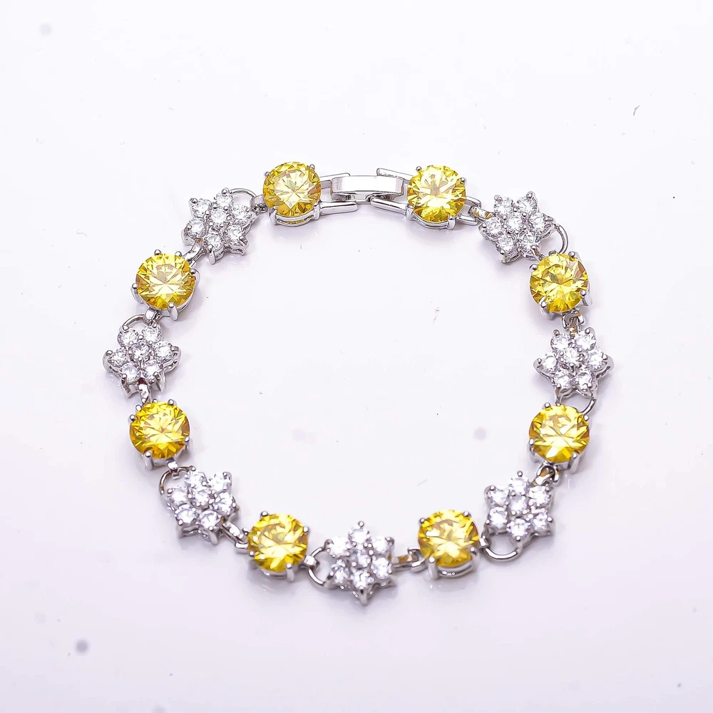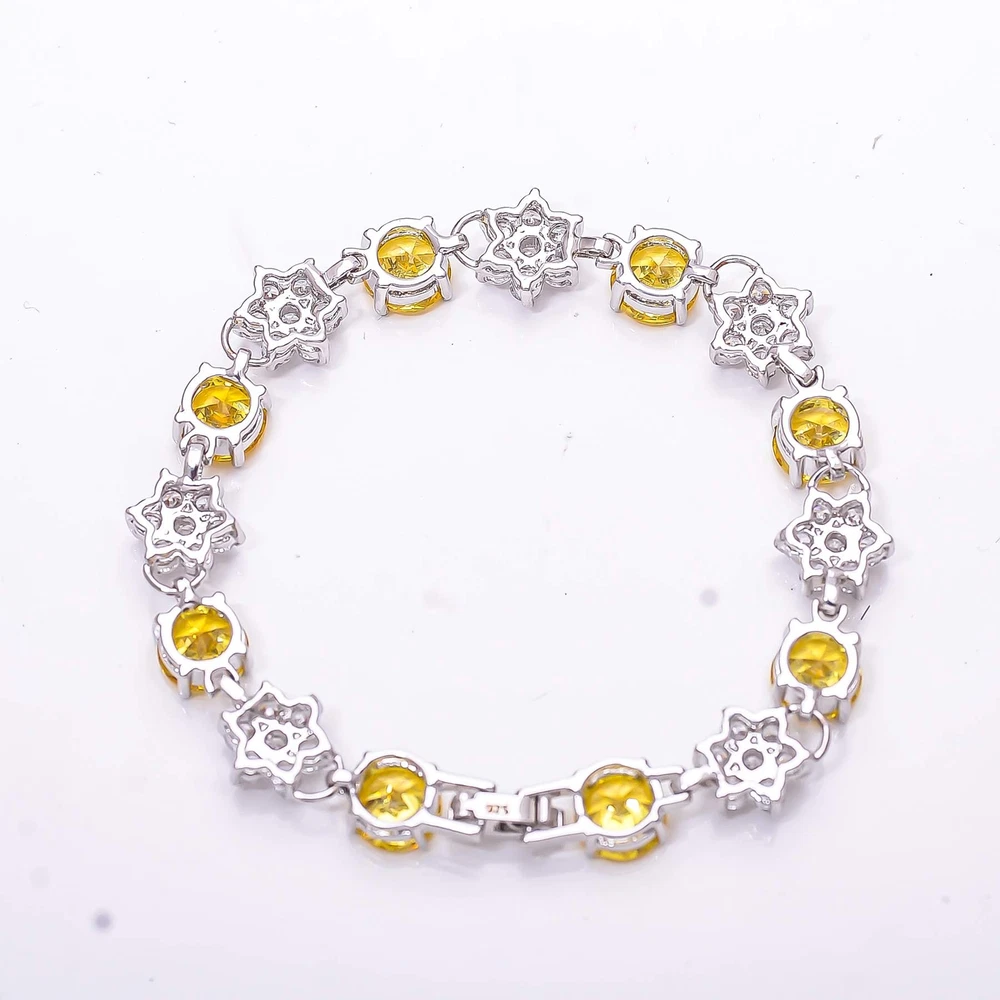 Yellow Sapphire & CZ Simulated 925 Silver Tennis Bracelet 7.99" B_9733_741_1