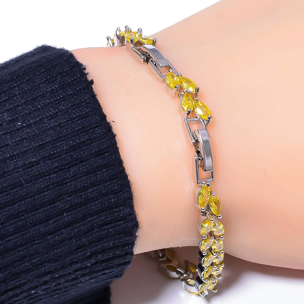 Yellow Sapphire Simulated 925 Sterling Silver Tennis Bracelet 7.99" B973468211
