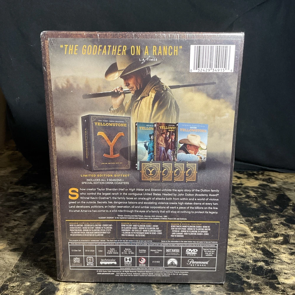 Immerse yourself in the captivating world of Yellowstone with this limited edition DVD set of the first three seasons. Featuring the hit TV drama series from Paramount, this DVD set is perfect for fans of the show who want to relive the thrilling storyline and exceptional performances from the talented cast. The set comes with table coasters and is an excellent addition to any collection for movies and TV shows. Explore the stunning visuals and gripping plot of Yellowstone, set in the beautiful landscapes of Montana. This DVD set is a must-have for anyone who loves TV drama and wants to experience the magic of the show. Get your hands on this limited edition DVD set today and add it to your collection!
