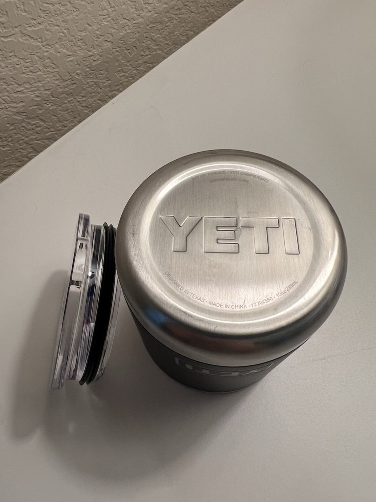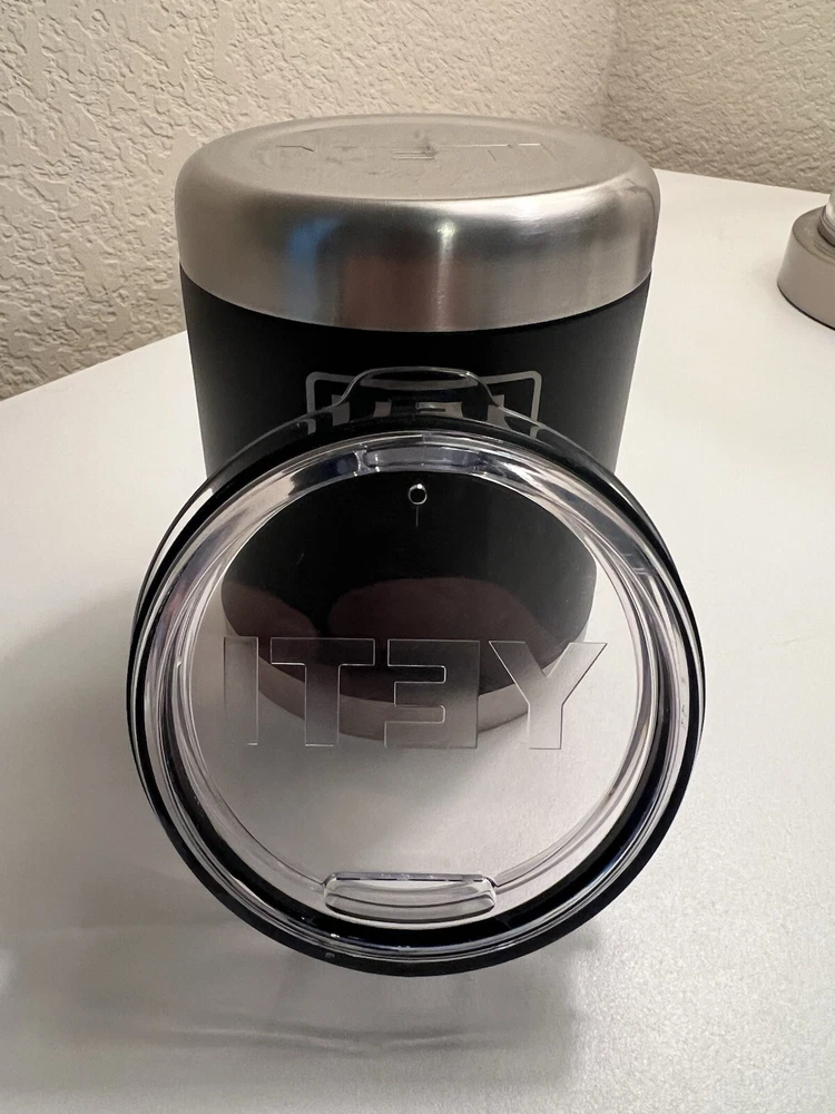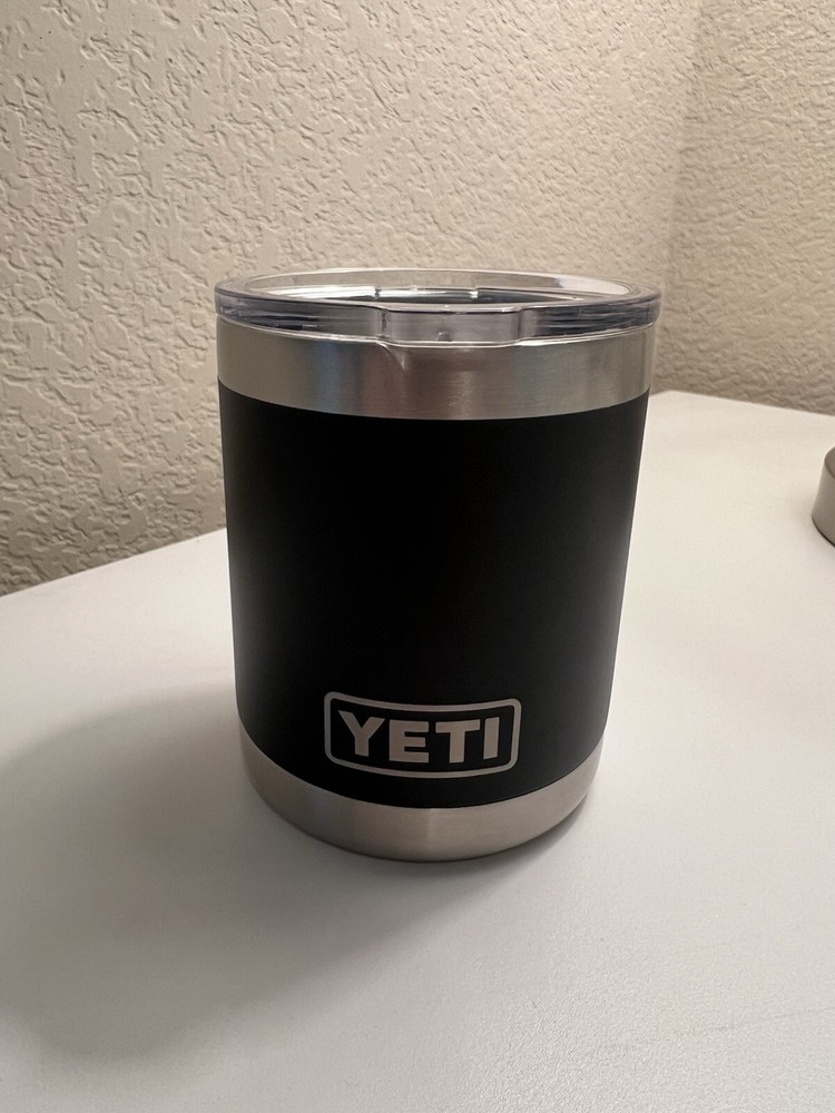 The Yeti Bulleit Bourbon 10oz Black Lowball Whiskey Tumbler is a limited edition, rare item. Made of stainless steel with insulated features, it's suitable for both hot and cold beverages. The sleek black and silver design adds a touch of sophistication. Perfect for enjoying your favorite whiskey or any other drink in style.