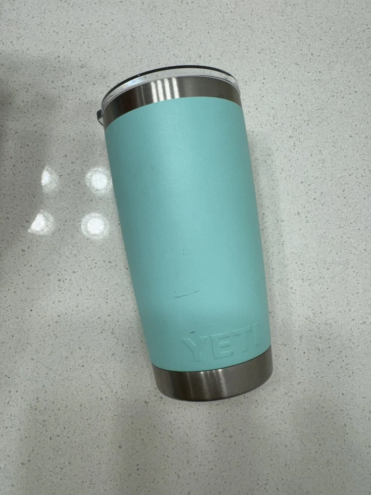 The tumbler has some scratches on the paint Some discoloring from tea and coffee The lid seal has a bit of tear