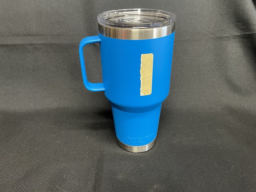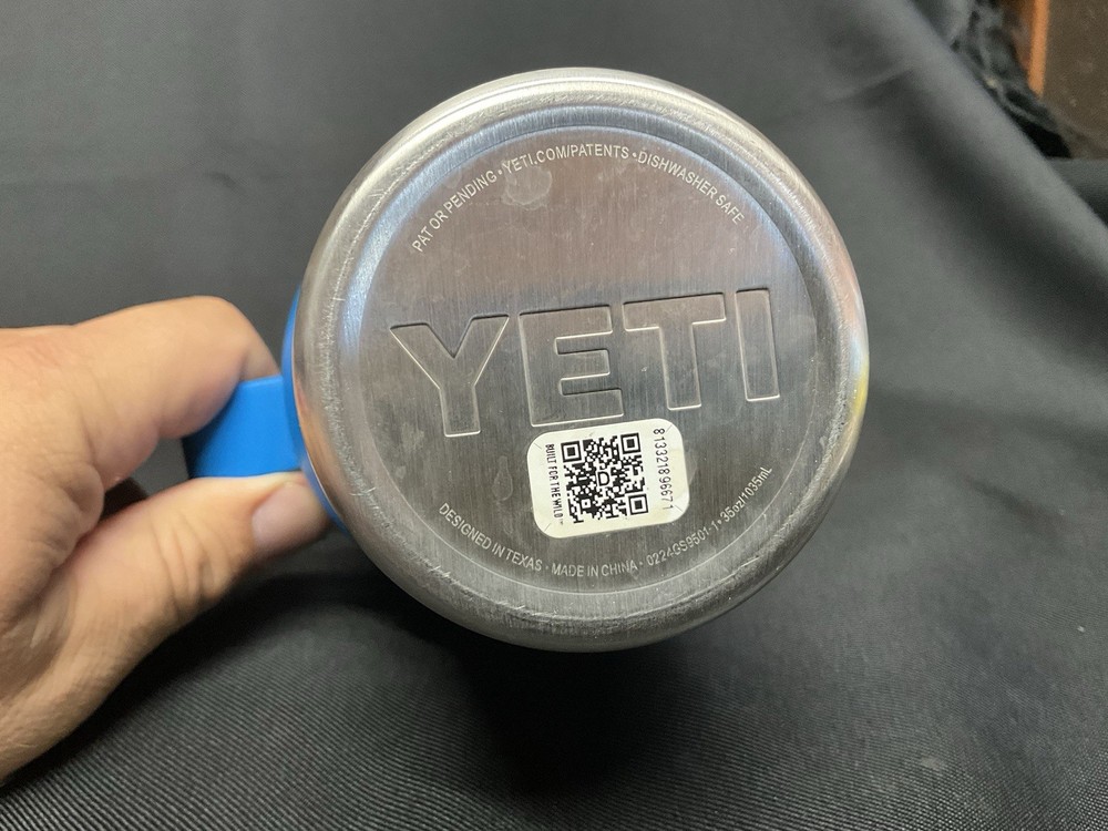 Up for sale is a 25oz Yeti Rambler mug in “Big Wave Blue” The mug is lightly used but is missing the straw from the straw lid. The previous owner worked for Yeti and had tons of promo items, mugs, coolers laying around. This mug was kept in a spare vehicle and only used once. The inside of the mug has a slight coffee residue but still looks like it was hardly touched. Some of the original Yeti paper label remains on the exterior and it has no chips or damage from use.