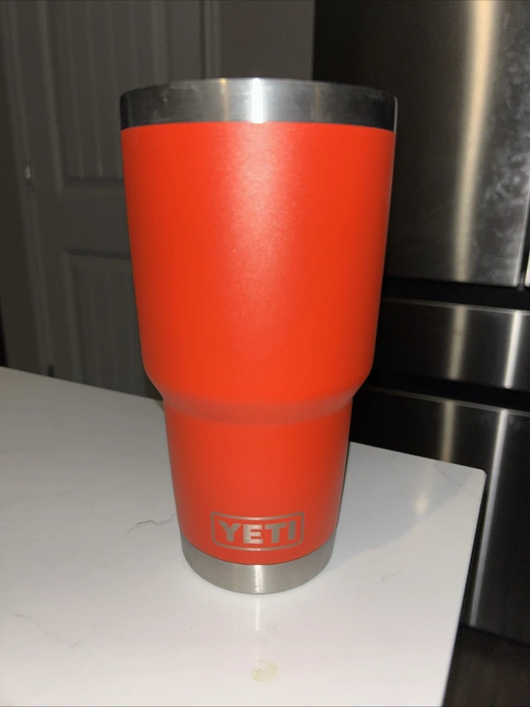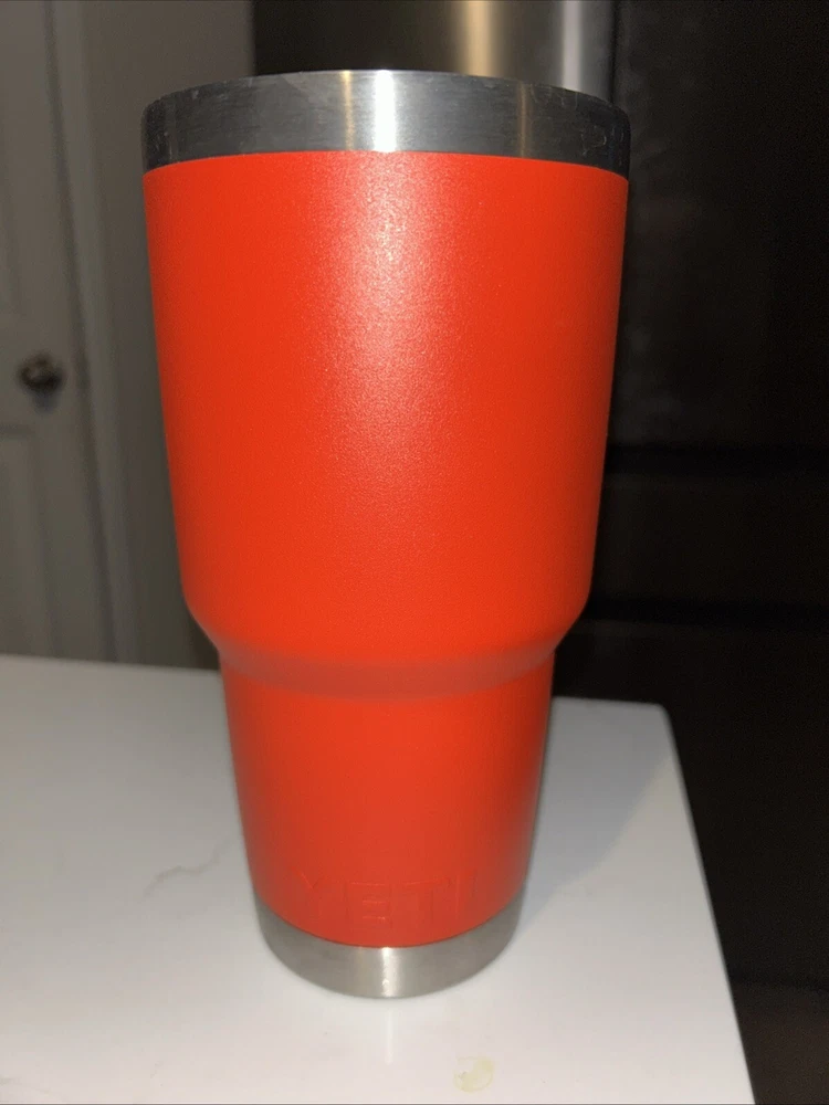 This Yeti Rambler Rescue Red tumbler is perfect for any hot or cold beverage. Made with high-quality stainless steel, it's built to last and keep your drinks at the desired temperature. The solid red color and food & drink theme make it a great addition to any kitchen, dining or bar collection. The tumbler comes with a lid to keep your drinks secure and the 30oz size is perfect for everyday use. Whether you're on the go or relaxing at home, this Yeti Rambler Rescue Red tumbler is the perfect choice for all your beverage needs. No lid.