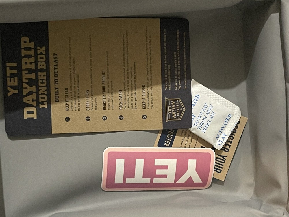 Pack your lunch and go with the YETI Daytrip Lunch Box. The water-resistant exterior helps protect your food, while the ColdCell™ Flex insulation keeps the food fresh. The leakproof liner allows for easy cleaning, and the thermo snap closure makes sure everything remains secured. Features and Benefits Water-resistant exterior construction offers increased protection ColdCell™ Flex insulation helps keep food fresh Leakproof liner allows for easy cleaning Thermo snap closure secures contents Specifications Manufacturer warranty - parts: 3-year Limited Exterior height (in.): 4.6 Rolling: No Activity: Camping Interior depth (in.): 7.5 Exterior width (in.): 10.7 Product Type: Soft Cooler Product weight (lb.): 1 Manufacturer warranty - labor: 3 years limited Interior height (in.): 3.1 Manufacturer warranty - general: 3-year Limited Interior width (in.): 9.6 Exterior depth (in.)