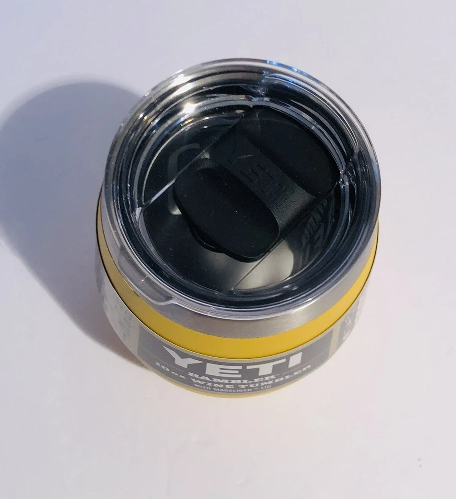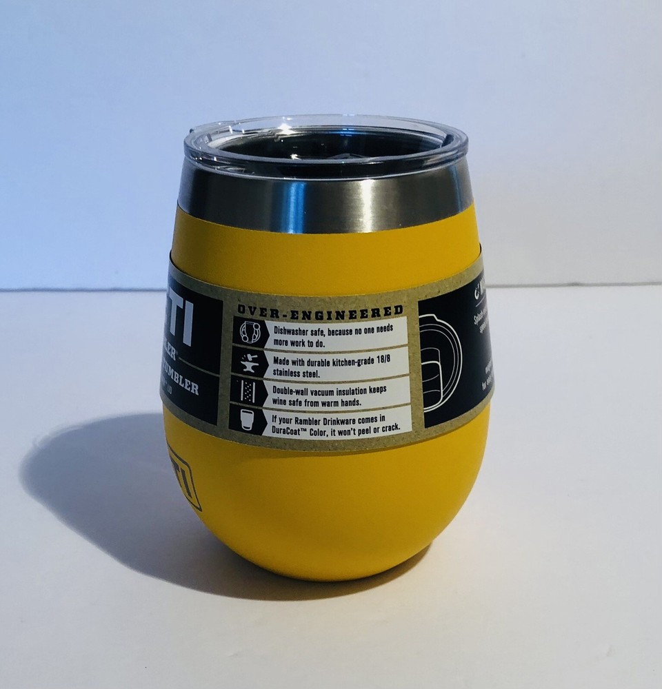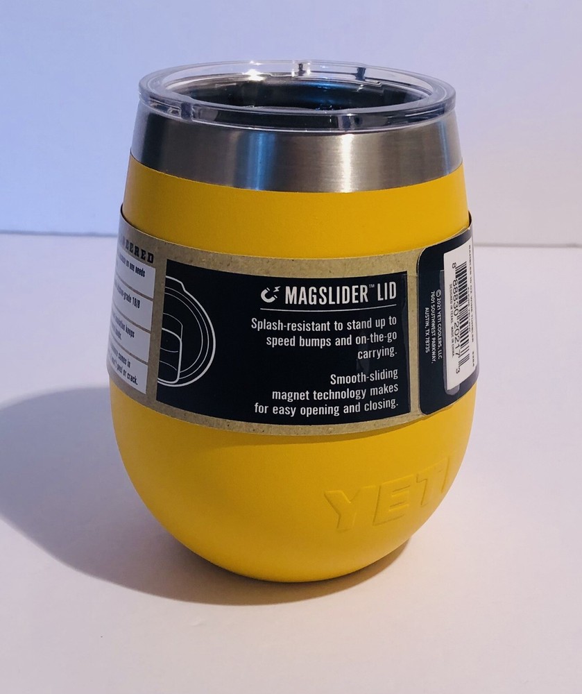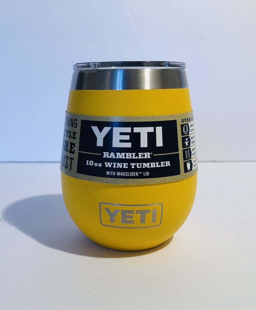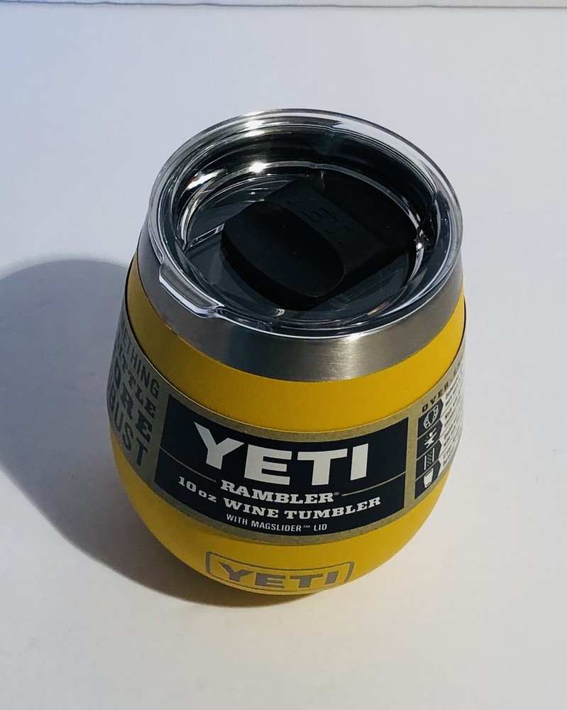 Yeti Rambler 10oz Wine Tumbler Alpine Yellow Magslider Lid Discontinued. Condition is Brand New. Comes with everything you see in the pictures only. Please view pictures to evaluate for yourself. Shipped via USPS Ground Advantage.