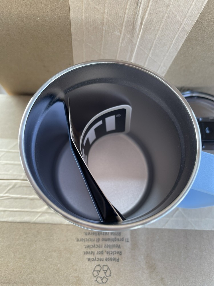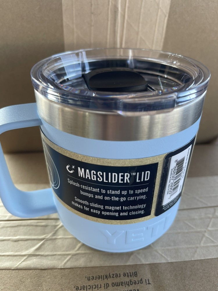 Stackable for compact storage and insulated for hot brews. Splash resistant Easy grip handle Dishwasher safe Stackable