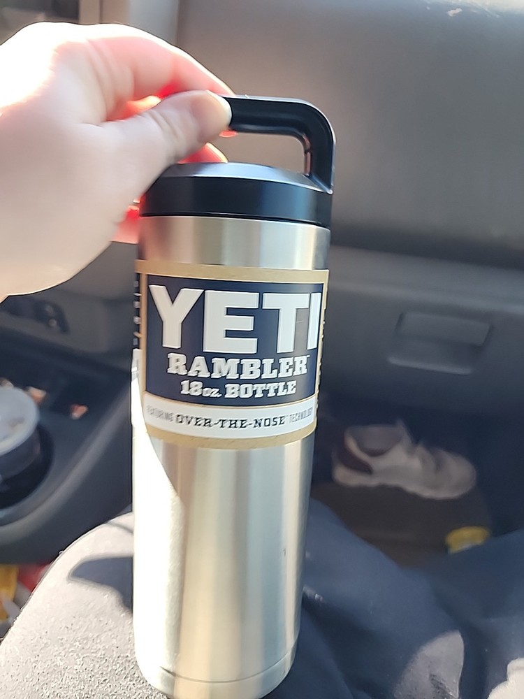 This YETI Rambler 18oz HOTSHOT CAP bottle is perfect for outdoor activities such as camping and hiking. The silver water bottle is insulated and includes a hot shot cap, making it ideal for keeping your coffee hot. With a volume of 18 oz, it's a great addition to your outdoor gear. The bottle and hot shot cap are included in this set.