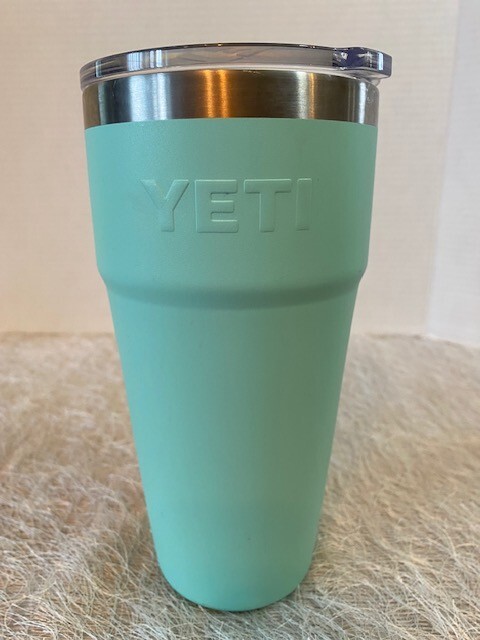 The Yeti Rambler 30 oz Tumbler in Seafoam Blue is a stylish and durable travel mug made of stainless steel. It comes with a lid and does not include a straw. This tumbler is ideal for keeping your beverages hot or cold while on the go. The Seafoam Blue color adds a touch of freshness to the design, making it a practical and fashionable choice for daily use.