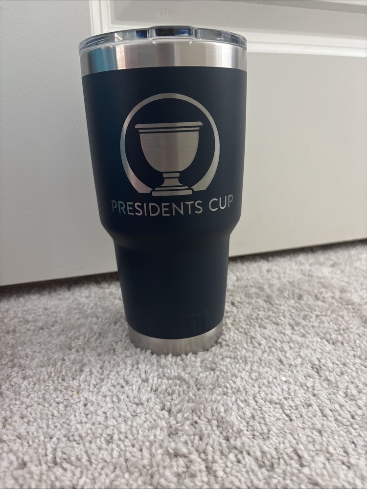 New yeti 30oz tumbler PGA tour Presidents Cup logo Sticker and registry information inside