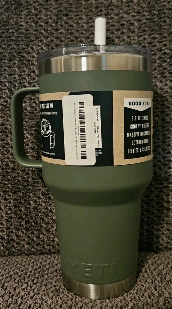 Yeti Rambler 35 oz Vacuum Insulated Camp Geen Mug, Straw Lid, Brand New!
