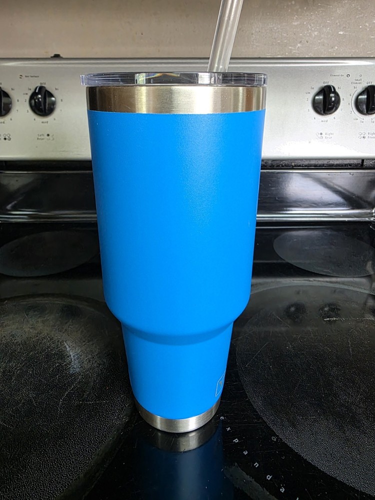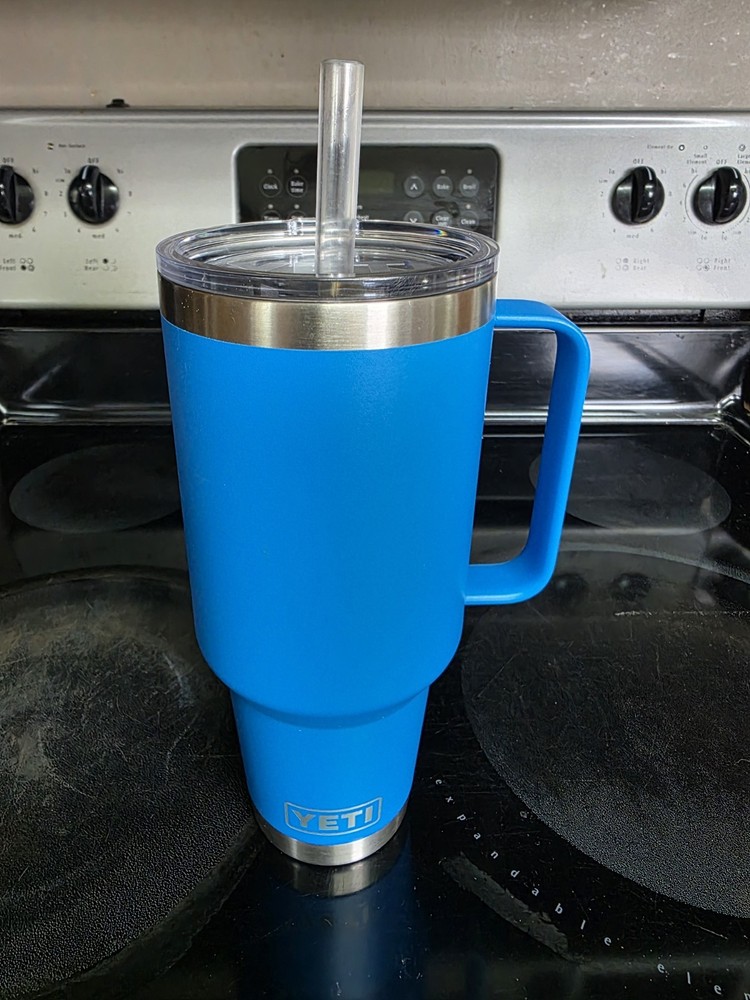 This Yeti Rambler is a dream—keeps drinks icy cold forever, and the retired Big Wave Blue color is stunning! Even though it's used, it looks brand new, no scratches or dings. The straw lid is super convenient, and the 42oz size is perfect for all-day hydration. An absolute steal for a hard-to-find color!