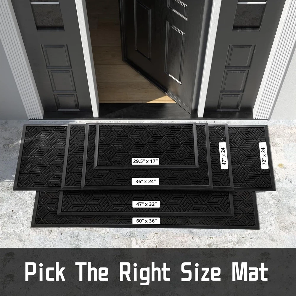 Store New Arrivals Add to Favorite View Feedback Contact Yimobra Front Door Mat outside Entrance 17X29.5, Waterproof All-Season Weather Doormat, Stain and Fade Resistant, Indoor Outdoor Entryway Welcome Mat, Non Slip Natural Rubber, Easy Clean Patio, Black Description Item model number DM01A Style Modern Weave Type Machine Made Pattern Geometric Age Range (Description) Adult Is Stain Resistant Yes Theme Sand Number of Pieces 1 Is Autographed No Brand Yimobra Material Polyester Model Name Durable Rug Form Type Doormat Manufacturer Yimobra Item Thickness 0.25 Inches Indoor/Outdoor Usage Outdoor, Indoor Room Type Entryway, Patio, Hallway Item Weight 2.31 Pounds Pile Height Low Pile Construction Type Machine Made Occasion Housewarming Special Feature Waterproof, Fade Resistant, Weather Resistant, Non Slip, Washable Color Black Shape Rectangular Back Material Type Rubber Product Dimensions 29.5"L x 17"W Product Care Instructions sweep, vacuum, rinse, shake off Size 17x29.5 Inch 【Capture Dirt and Moisture】Yimobra front door mat fits all season and all weather, it features with patterned groove design that provide a good catcher for sand/ debris/ dust from bare feet and shoe/ sandel/ boot soles. The beveled border design helps to form a retention dam to catches everything the dogs bring in including muddy, wet feet 【Non Slip Natural Rubber Backing】Yimobra door mat is made of heavy duty non-slip natural rubber backing, natural rubber provides higher tensile strength, higher tear resistance, and less odor than synthetic rubber. And the heavy duty backing helps prevent you from slipping when entering and exiting, ensuring your safety and protecting your floor 【Stain, Weather and Fade Resistant】The Yimobra welcome mat is constructed to withstand all weather conditions, from snow and rain to mud and sand. It features a stain, weather, and fade-resistant topside, ensuring long-lasting use both inside and outside your home. It's sturdy doormat surface is made of polyester material with good water proof, can capture rain, snow, and dirt 【Easy to Clean】Yimobra outdoor mat is easy to clean, just use a vacuum cleaner, sweep with a broom, or tap the backing and shake the indoor entrance door mat. For a deeper clean, use a garden hose to rinse the doormat, and hang it in a ventilated place to air dry it. This versatile cleaning method ensures that your doormat stays clean and tidy, ready to welcome guests 【Sturdy & Versatile】Yimobra doormat outside entrance is made of high-quality polyester and natural rubber non slip backing, which is sturdy, strong, flexible and has a longer service life. Very suitable for indoor, outdoor, front door, side door, walkway, entrance, hall, garage, patio, barn or any other busy areas Product Description Yimobra Outdoor Door Mat Our front entrance door mat is designed with a exclusive flow pattern. The irregular striped grooves can traps dirt, dust, mud, sand, or other messy debris and prevents them from entering the room, keeping your home clean and tidy. Yimobra outdoor mat is made of natural rubber backing, which helps prevent you from slipping when entering and exiting, ensuring your safety and protecting your floor. Our entry rug is made of polyester material which can absorb water, rain, and snow. The video showcases the product in use. The video guides you through product setup. The video compares multiple products. The video shows the product being unpacked. 1 Catch Dirt & Moisture 2 Deep Groove 3 Easy to Clean Weather and Seasons Door Mat Pick the Right Size Door Mat For Your Home STURDY FABRIC Our outdoor mat is made of high-quality polyester, has no pilling, and absorbs moisture strongly HEAVY DUTY BACKING Natural rubber back for the floor mat has strong friction, not going to move by casual walking or step TRAPS DIRT AND MOISTURE Deep grooves, capture dirt, dust, and other messy debris LOW-PROFILE DESIGN Low profile design, not going to trap your door open or close. Fit any door entrance design. 1 ENTRANCE 2 OUTDOOR 3 INDOOR 4 BALCONY 5 STAIRS ABOUT US We offer the best prices around on high quality products. Our E-store includes media such as books, movies, music and games while offering electronics, toys, sporting apparel, clothing, tools, general home, garden items and more. SHIPPING We are always working hard to ensure your package arrives as soon as possible. Please understand that some factors like weather, high postal traffic, and the performance of shipping companies are outside of our control. RETURNS We offer a 30-Day Return Policy on items which you are not completely satisfied with. You have the option for a full-refund or an exchange of the item. No returns are available on items shipped outside of the USA. PAYMENT We accept PayPal. CONTACT US This page content is yet to come Please ad us to your favorite seller and visit again later Thank You CUSTOMER SATISFACTION We try our very best to make sure every customer is completely satisfied. If there's a problem, message us! We're happy to help.