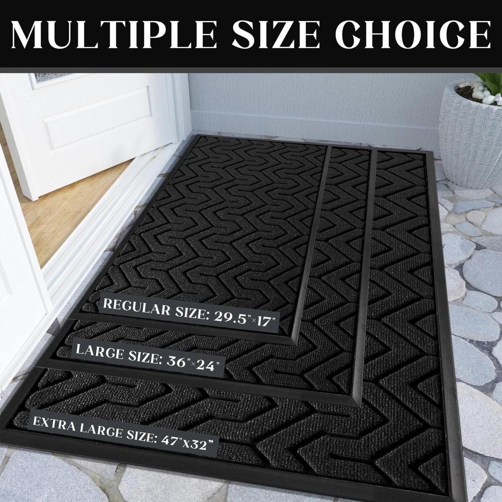 Yimobra Front Door Mat Outside Entrance, 36x24 Waterproof Outdoor Indoor Welcome Mat, Heavy Duty Doormat, Low Profile, Non Slip Garge Porch Entryway Mat, Easy Clean, Black Product Details Size: 36x24 Inch Color: Black Brand: Yimobra MPN: DM03 UPC: Does not apply EAN: Does not apply Brand: Yimobra Size: 36x24 Inch Material: Polypropylene Weave Type: Machine Made Item Weight: 2.31 Pounds Brand: Yimobra Size: 36x24 Inch Material: Polypropylene Weave Type: Machine Made Item Weight: 2.31 Pounds Pile Height: Low Pile Construction Type: Machine Made Back Material Type: Rubber Color: Black Indoor/Outdoor Usage: Outdoor, Indoor Theme: Garden,Striped Is Stain Resistant: Yes Product Care Instructions: Vacuum cleaner Pattern: Solid Shape: Rectangular Special Feature: Fade Resistant, Stain Resistant, Non Slip, Washable Room Type: Hallway Product Dimensions: 36"L x 24"W Rug Form Type: Doormat Style: Modern Occasion: New Year, Housewarming Min. Required Door Width: 3E+1 Inches Number of Pieces: 1 Item Thickness: 0.4 Inches Water Resistance Level: Water Resistant Is Autographed: No Model Name: Durable Front Door Mat Global Trade Identification Number: 70 Age Range (Description): Adult Recommended Uses For Product: Wiping feet, capturing dirt and moisture, indoor and outdoor use, non-slip, easy to clean, water-resistant Item Weight: 2.31 pounds Country of Origin: China Item model number: DM03 Date First Available: September 19, 2019 Capture Dirt and Moisture: Yimobra front door mat adopts triangular striped groove design, forming a detention dam extending in all directions, helping to capture dirt, dust, gravel, mud, sand, grass or other messy debris and prevent them from entering Indoor; The surface of floor mat beautifully woven polyester fabric absorbs moisture, and the sturdy oblique rubber edge will not accumulate water in rainy and snowy days, keeping your home dry and clean Rugged and Sturdy: The surface of this Yimobra outdoor mat is made of high-quality polyester, unique Hot-melt Planting Production Process, which is designed to be sturdy, strong and flexible. The doormat in outside can withstand a variety of weather and seasonal changes, whether it is sunny, rainy or snowy Easy to Clean: Yimobra front door mats outdoor, Just use a vacuum cleaner, or sweep with a broom, or tap the backing and shake the doormat. For more in-depth cleaning, use a garden hose to rinse the floor mat, then hang it in a ventilated place to air dry it Non Slip Rubber Backing: Yimobra heavy duty door mat, 0.20 inch ultra-thin design, can glide under most doors without jamming or curling. The outdoor mat uses a high-quality non-slip rubber backing to help prevent you from slipping when entering or going out, keeping you safe. At the same time, the rubber backing can prevent water and mud from penetrating the floor, keeping door rug in place and not sliding or wear the floor and effectively protect your floor Wide Use: Yimobra versatile welcome mats are stylish and practical, suitable for indoor use to keep the floors of homes, living spaces, lobbies and offices clean, or outdoor use in front doors, sidewalks, terraces, garages, barns, driveways and many others busy areas; Heavy and sturdy materials, soft and flexible; Simple and stylish design complements any decoration