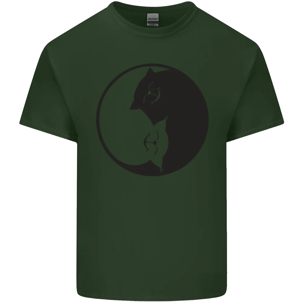 Yin Yang Cat Lover Funny Kitten Pet Mens Cotton T-Shirt Tee Top