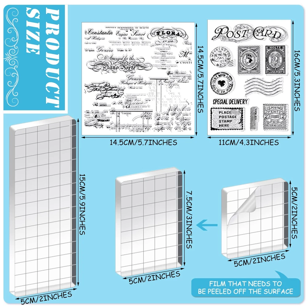 Features: Improve your hand on skill: These scrapbooking stamps are suitable for DIY some delicate handcrafts, expanding your imagination, improving your DIY skills, allowing you to get an accomplishment from DIY. Ideal gift choices: You can send these decorative clear stamps as thoughtful gifts to your friends and family who like to make handicrafts, to show your love and care, enchancing your relationship. Specifications: Material: Postage stamps: silicone Acrylic sheet: acrylic Color: as the picture shown Size: as the picture shown Postage stamps: 4 sizes About 11.2 x 15.3 cm/ 4.41 x 6.02 inches About 10 x 14 cm/ 3.94 x 5.51 inches About 17 x 21.5 cm/ 6.69 x 8.46 inches About 14.5 x 14.5 cm/ 5.71 x 5.71 inches Acrylic sheets: 3 sizes About 7.5 x 5 cm/ 2.95 x 1.97 inches About 5 x 5 cm/ 1.97 x 1.97 inches About 15 x 5 cm/ 5.91 x 1.97 inches Package includes: 4 Sheets of postage stamps 3 x Acrylic sheets Notes: Manual measurement, please allow slight errors on size. The color may exist a slight difference due to different screen displays. Practical Combination Set: the package comes with 4 sheets of clear postcard stamps, printed with different words and exquisite patterns, 3 pieces of acrylic sheets in 3 different sizes, a nice combination set to meet your craft or decoration needs Sturdy for Long Time Use: made of quality silicone material, these vintage clear stamps are stable in structure, not easy to break or fade, serviceable and washable, and the words can be retained for a long time, providing you with a long service life Size Details for Your Reference: these stamps for journaling are about 4.41 x 6.02 inches, 3.94 x 5.51 inches, 6.69 x 8.46 inches, 5.71 x 5.71 inches respectively, and the acrylic sheet is about 2.95 x 1.97 inches, 1.97 x 1.97 inches, 5.91 x 1.97 inches respectively, the proper size for your use Simple to Apply: you just need to tear off the transparent stamp, then paste the stamp on the acrylic block with a printing pad (not included), and print the drawing on the paper to get a vivid picture you want, convenient for your use, saving your time and energy Wide Range of Applications: these vintage postage stamps are suitable for decorating your photo albums, holiday cards, scrapbooks, notebooks, diaries and more, adding a cute and interesting style to your personal items