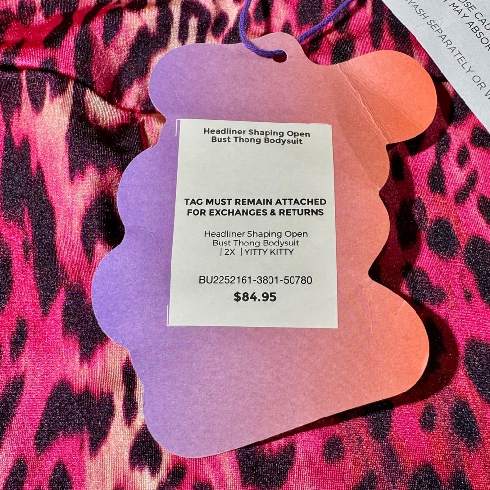 Headliner Shaping Open Bust Thong Bodysuit, a statement piece designed to sculpt and flatter. This bodysuit features a bold animal print in vibrant pink hues, creating a striking and confident look. The open bust design allows for customizable support with your favorite bra, while the shaping construction provides a smooth and streamlined silhouette. The thong cut ensures a seamless fit under clothing, making it perfect for any occasion. Keywords: Yitty, Bodysuit, Shapewear, Open Bust, Thong Bodysuit, Animal Print, Pink Bodysuit, Plus Size, 2X, Headliner Shaping, Party, Night Out, Sexy, Contemporary, y2k All items come from a clean, pet free/smoke-free home and are carefully packed for shipping. Send me an offer or Bundle & save.Let's make a deal!