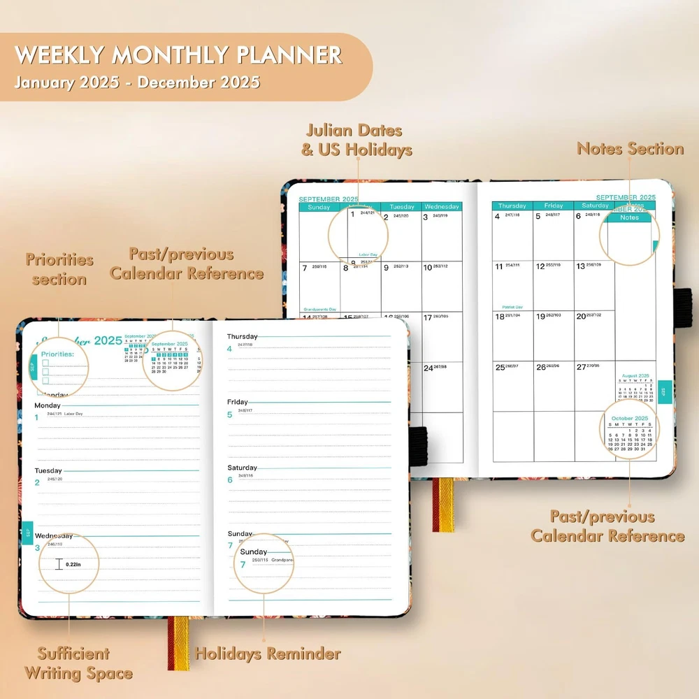 Ymumuda 2025 Pocket Planner, Weekly Monthly Planner 2025, JAN.2025to DEC.2025, 6.4×4", Mini Size for Purse, Easy to Carry, Professional Tight Binding, Small Academic Planner for Women/Girls 【YMUMUDA 2024-2025 POCKET PLANNER 】This small planner calendar 2024-2025 hardcover (6.4" X 4") features 12 months from JUL. 2024 to JUN. 2025 with weekly monthly planning pages, the pocket planner is portable, easy to carry, to help you well organized anytime anywhere. 【YMUMUDA 2025 POCKET PLANNER 】This small planner calendar 2025 hardcover (6.4" X 4") features 12 months from JAN. 2025 to DEC. 2025 with weekly monthly planning pages, the pocket planner is portable, easy to carry, to help you well organized anytime anywhere. 【 MONTHLY PLANNING 】Each monthly pages with lined daily blocks lists major US holidays and Julian dates, the calendar planner 2025 also contains a notes section and past/previous calendar reference for your better past reviewing and future planning. 【WEEKLY PLANNING】Weekly view pages contain enough ruled space for your detailed daily planning, appointments, activities and so on. Major Holidays Listed, elapsed and remaining days noted. Priorities section is designed to focus your energy on your most important goals. 【MINI SIZE, PROFESSIONAL DESIGN 】Mini size 6.4" X 4" for purse, easy to carry | Excellent cover design, comfortable texture | Professional Tight Binding, pages are not easily scattered | Premium paper, smooth writing experience | Inner Pocket, convenient to hold some cards | Weekly and Monthly Pages, ample daily blocks for your planning. 【WORRY-FREE GUARANTEE】Focus on providing small planner with excellent production and professional design. We provide 30-day quality assurance. If you're having ANY quality issues about your weekly monthly planner 2025, please contact us via amazon at first time. Shipping from the USA All of our products are shipped from the USA, ensuring quick delivery to your destination. Payment We offer the following payment methods: PayPal, credit card, bank transfer, and eBay's secure payment system. Free Shipping & Free Returns Shipping within the USA is FREE. Additionally, any return is absolutely free for you. Risk-Free Purchase You have the option to return an item within 30 days without any justification. We cover the return shipping costs! Fast Shipping We ship immediately upon receipt of payment. Generally, the package is delivered within 2-3 days in the USA. If it takes longer, we will contact you. Quality and Costs Made in Europe, USA, China No customs fees or additional charges Total satisfaction guarantee Invoice with declared VAT available upon request in .pdf format Feedback Your feedback is very important to us. After you pay for your purchase, you will automatically receive positive feedback from us.