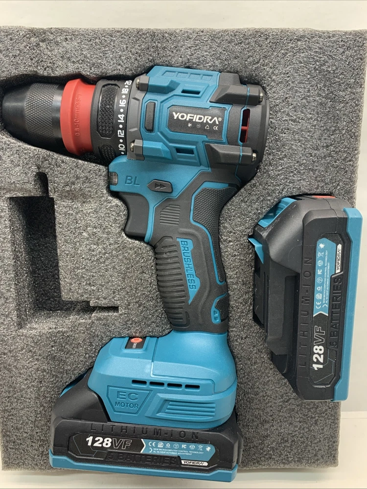 The Yofidra 10mm 18 Volt Power Drill is a lightweight cordless drill with a brushless motor and two 18V Lithium-Ion batteries included for quick charging in just 1 hour. It has a 1/4 inch keyless chuck, operating at a speed of 3600 RPM, making it efficient for various drilling and screwdriving tasks. The set includes a battery charger, extension rod, socket connector, drill bits, screwdriver bits, and other attachments, providing versatility for different projects. With a 1-year manufacturer warranty, this blue drill from Yofidra is a reliable choice for DIY enthusiasts and professionals alike. Sorry no case. Will ship out next day after full payment. PayPal please.