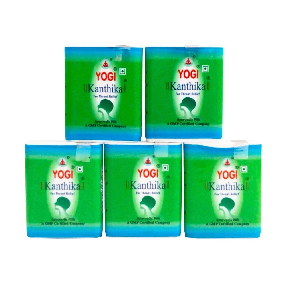 Yoga Kantika Set (Yogi Kanthika Set) is an Ayurvedic set consisting of 5 packs of a remedy for sore throat relief and sore throat pain caused by pharyngitis, tonsillitis and other bacterial infections. Thanks to the content of ginger, yashtimadhu and tulsi, Yogi Kantika helps to soothe coughs, eliminate tickling and irritation in the throat and relieve swelling. These lozenges can be taken both at the first sign of a cold, and with a protracted sore throat. The tool helps to restore a hoarse voice, and also freshens breath.. Yogi Kantika is created exclusively on the basis of natural ingredients, therefore it is safe for children.. basic information: the set contains 5 packs of Yogi Kantika natural product GMP certified sugar free designed to alleviate the condition with angina helps to soothe cough, eliminate sore throat can be taken at the first sign of a cold and with prolonged sore throat helps to restore a hoarse voice freshens breath safe for children Dietary supplement, not a drug ayurvedic food supplement Indications for use: sore throat angina respiratory infections edema cough hoarse voice bad breath Contraindications: individual intolerance to individual components during pregnancy and lactation, it is recommended to consult a doctor Active Ingredients: Liquorice (Glycyrrhiza glabra) - has expectorant and enveloping properties, reduces spasms of smooth muscles of the bronchi. Ginger (Zingiber officinale) - strengthens the immune system, resists infections, has antibacterial, expectorant and analgesic properties. Nutmeg (Myrisica fragrans) - relieves pain, has an antimicrobial and analgesic effect. Instructions for use: Take 2-3 lozenges 5-6 times a day. A preliminary consultation with a doctor is recommended. Composition: Each lozenge contains: Liquorice (Glycyrrhiza glabra) – 42%, Licorice (extract) (Glycyrrhiza glabra) – 30%, Ginger (Zingiber officinale) – 10%, Nutmeg (Myrisica fragrans) – 4.75%, Tulsi (Ocimum sanctum) – 2.5%, Cubeba pepper (Piper cubeba) – 2.5%, Peppermint (Mentha Piperata) – 2.0%, Carnation (Syzygium aromaticum) – 2.0%, camphor cinnamon (Cinnamomum camphora) – 2.0%, fragrant celery (Apium leptophylium) – 0.25%, Arabian acacia (Acacia Arabica) - required amount (Q.S.). Storage conditions: Store in a dry and dark place. Denial of responsibility: tries to provide only up-to-date information about products, but the packaging design may differ from that presented on the site. Before using the drug, read the instructions for use attached to it or consult a specialist. Manufacture country: India