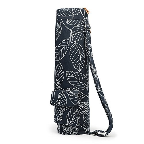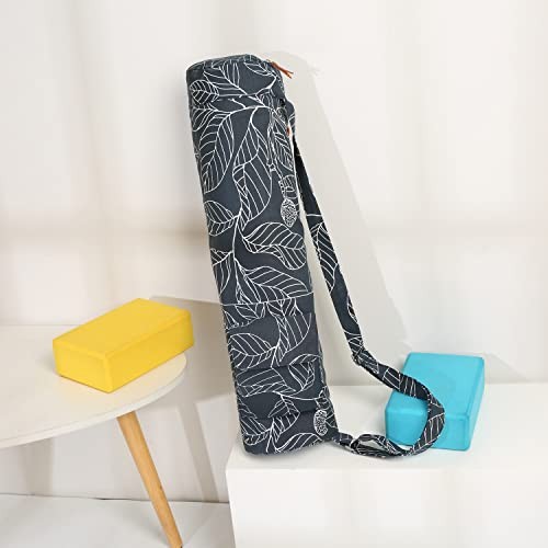 Yoga Mat Bag for 1/4-Inch 1/3-Inch Thick Exercise Yoga Mat, Navy Blue Leaf