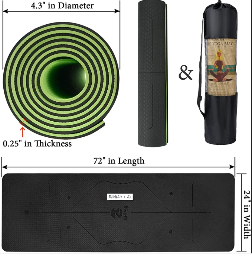 NEW ECO-FRIENDLY MATERIAL - Saphirose yoga mat is made of advanced TPE friendly materials. Free of any harmful chemicals such as latex and phthalates. Compared with traditional yoga mats made of PVC, NBR, and EVA materials, it is softer, lighter, and more elastic. LIGHTWEIGHT & EASY CARRY -Accessories include yoga mat bag, storage straps and stretch straps. It's so light that you can take it to the gym or wherever you want for yoga, pilates, stretching and toning workouts. EXTRA LARGE SIZE -72"x 24". The 6mm thickness provides the most comfortable experience for all levels of yoga enthusiasts. It is longer, wider and more comfortable than a regular yoga mat, which can be used by most people. BODY ALIGNMENT LINES -The guidelines are ingrained in the mat so you don't have to look down. The alignment lines on the exercise mat are wonderful for stride and symmetry which help you to focus and adjust your hands and feet to the accurate position and keep your body in proper alignment.It creates a stable foundation for safe practice, your yoga skills will improve quickly and accurately. NON-SLIP, WATERPROOF AND EASY TO CLEAN -The closed-cell surface can prevent dust and sweat from seeping in and causing odors or health damage, so it is easier to wipe and clean. Our yoga mats are designed with an exclusive double-side sticky non-slip texture pattern to provide excellent traction and superior grip on wood, tile, or cement floors. ABOUT US We offer the best prices around on high quality products. Our E-store includes media such as books, movies, music and games while offering electronics, toys, sporting apparel, clothing, tools, general home, garden items and more. SHIPPING We are always working hard to ensure your package arrives as soon as possible. Please understand that some factors like weather, high postal traffic, and the performance of shipping companies are outside of our control. We offer free shipping to the lower 48 states and ship within 2 business days of payment, usually sooner. We do not accept P.O. Boxes. Please provide a physical address. For shipping outside of the continental USA, we only use eBay's Global Shipping Program.The item is shipped to KY and then sent to the rest of the world. International customers are responsible for all duties and taxes. Continue to check out in order to calculate costs for shipping the item to your country. Messages regarding eBay's Global Shipping Program MUST be directed at eBay EXCLUSIVELY. RETURNS We offer a 30-Day Return Policy on items which you are not completely satisfied with. You have the option for a full-refund or an exchange of the item. No returns are available on items shipped outside of the USA. CUSTOMER SATISFACTION We try our very best to make sure every customer is completely satisfied. If there's a problem, message us! We're happy to help. Color:Purple/Pink,Grey/Pink,Blue,Green,Grey,Light Blue Size: 72"(183cm) x 25" (64cm) Thi ckness: 6mm Material:TPE Feature : 1.ECO FRIENDLY TPE MATERIAL:Ativafit yoga mats are made of SGS certified TPE material which is non-slip, odor-less and excellent in cushioning, unlike those cheap & traditional non-green PVC, NBR or EVA yoga mats. They are truly eco-friendly, healthy and recyclable. 2.BODY ALIGNMENT LINES: This yoga mat with alignment marks can help you keep the body in proper alignment, create a stable foundation for safe practice, your yoga skills will improve quickly and accurately 3.LARGE SIZE: 72"(183cm) x 25" (64cm),Thickness: 6mm,ensures comfort for all-purpose and guarantees to provide the optimal level of cushion and protection for your joints and knees while still allowing you to grip the floor for balance poses. 4.WATERPROOF AND EASY TO CLEAN: Ativafit yoga mat doesn't contain PVC, latex, and it certainly won't assault your senses with any smells. The closed-cell surface locks out dust and moisture to keep sweat and odors at bay. Easy to wipe clean. 5.LIGHTWEIGHT & EASY CARRY: A free yoga mat strap is included. It is very easy to storage, and great for yoga, Pilates, stretching and toning workouts. With a thickness of 6mm and free from latex and phthalates, this mat should last the duration of your yoga journey. Package includes: 1X Yoga Mat, 1X Yoga Strap Shipping 1. Fast and Free Delivery 2. All itemwill be shipped out within 24 hours (working day) 3. The arrival time should be 1-5business days . 4. Tracking number will be informed right after your order is shipped Return 1.Customer satisfaction is our top goal. We believe our items are so outstanding. All products are quality checked. They are new and in good condition when shipped to our customers. We are convinced you will be happy with your Purchase. 2. If product is defective or damage upon arrival, or wrong product shipped, please contact us immediately. Returns accepted within 30 days of delivery date and item must be in original new condition, not worn or altered in any way with attached tags & wrap. Otherwise deal is final. Return shipping must be paid by buyer. 3. Please contact us first if you have any problems/questions/concerns. We will be happy to resolve any issues you may have in a cordial and friendly manner. 4. We appreciate your Postive Feedback, and will do the same in return. DO NOT leave negative feedback without first communication with us. Please allow max 2 business days for us to response. About us AtivaFit brand is positioned to provide mass market consumers with affordable home grade sports and fitness equipment and relevant advice to support their active lifestyle. We strive to bring these values to our customers: Freedom, Attitude, Confidence, and Energy (FACE)Brand message: Be Better You!We are committed to bring our customers the unique product experiences supported by reliable products, supportive information, and latest technology