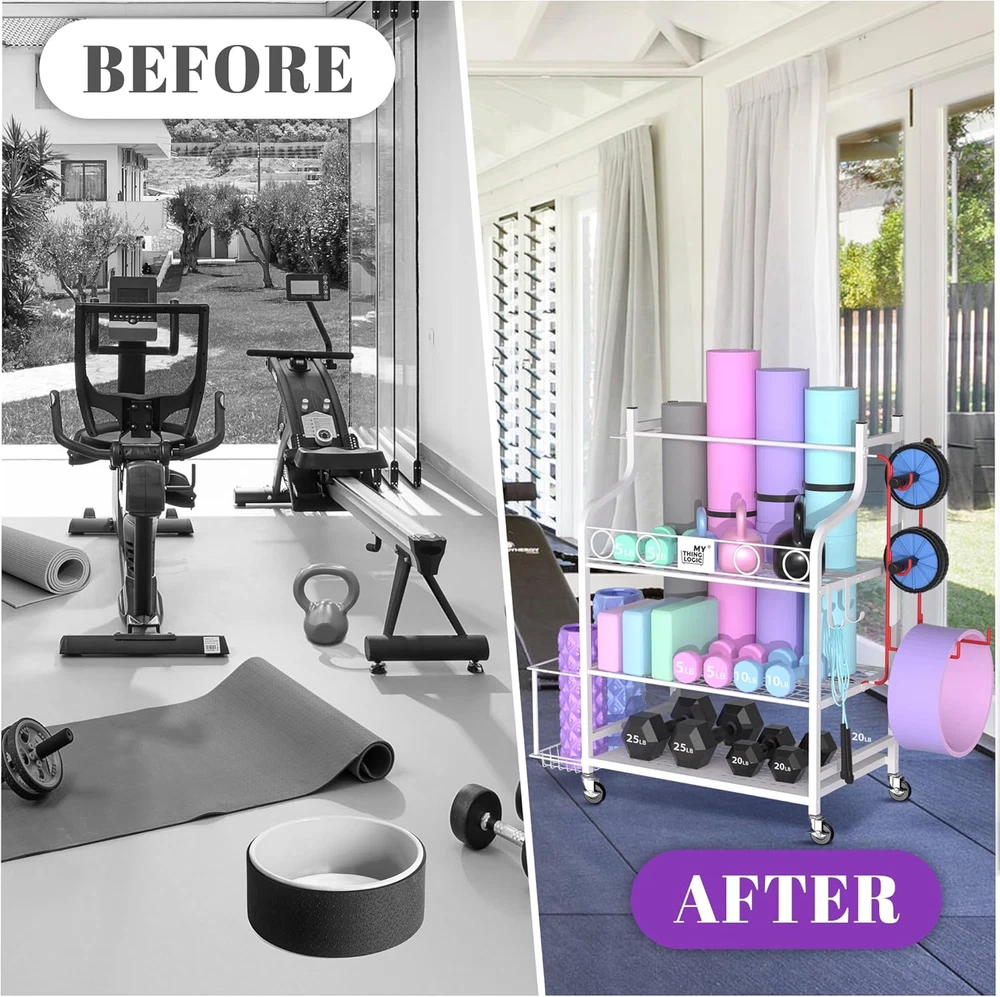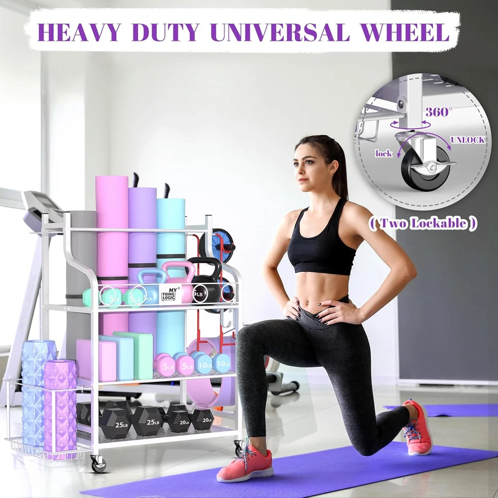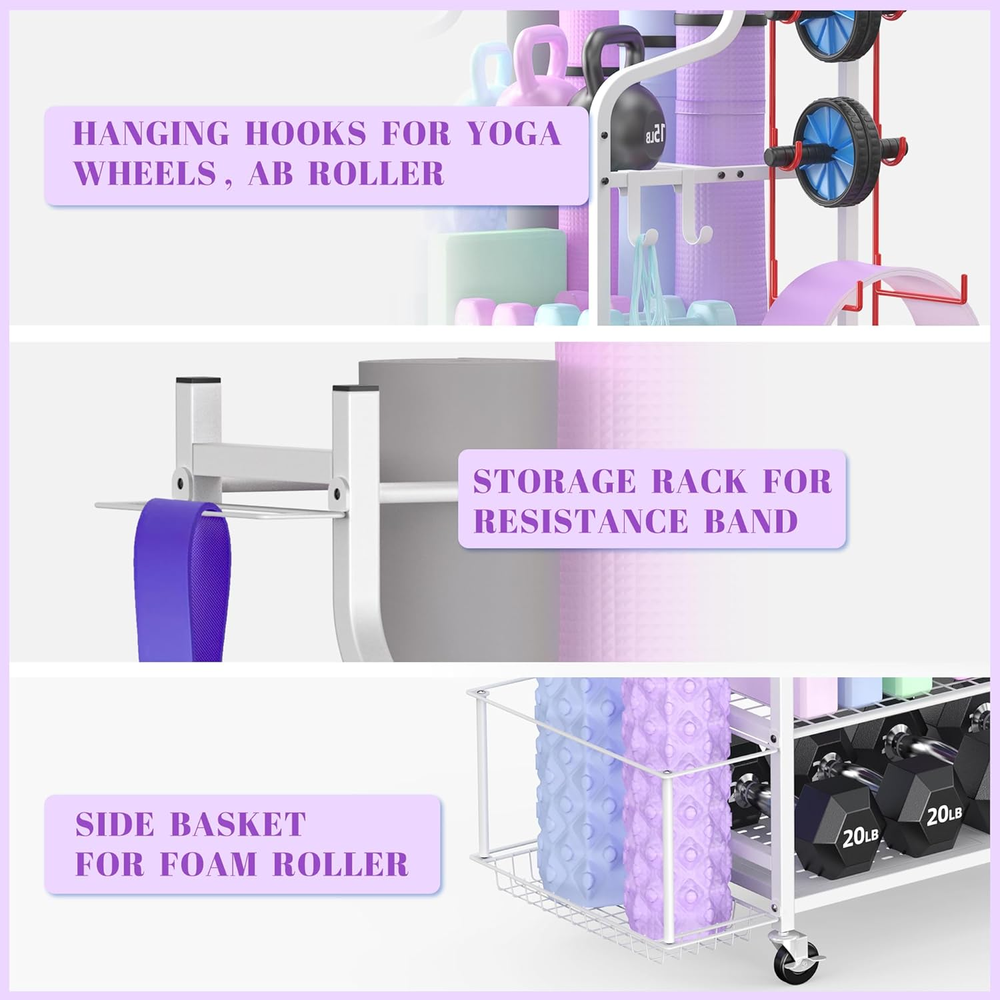 Yoga Mat and Home Gym Storage Rack for Dumbbells Kettlebells Foam Rollers