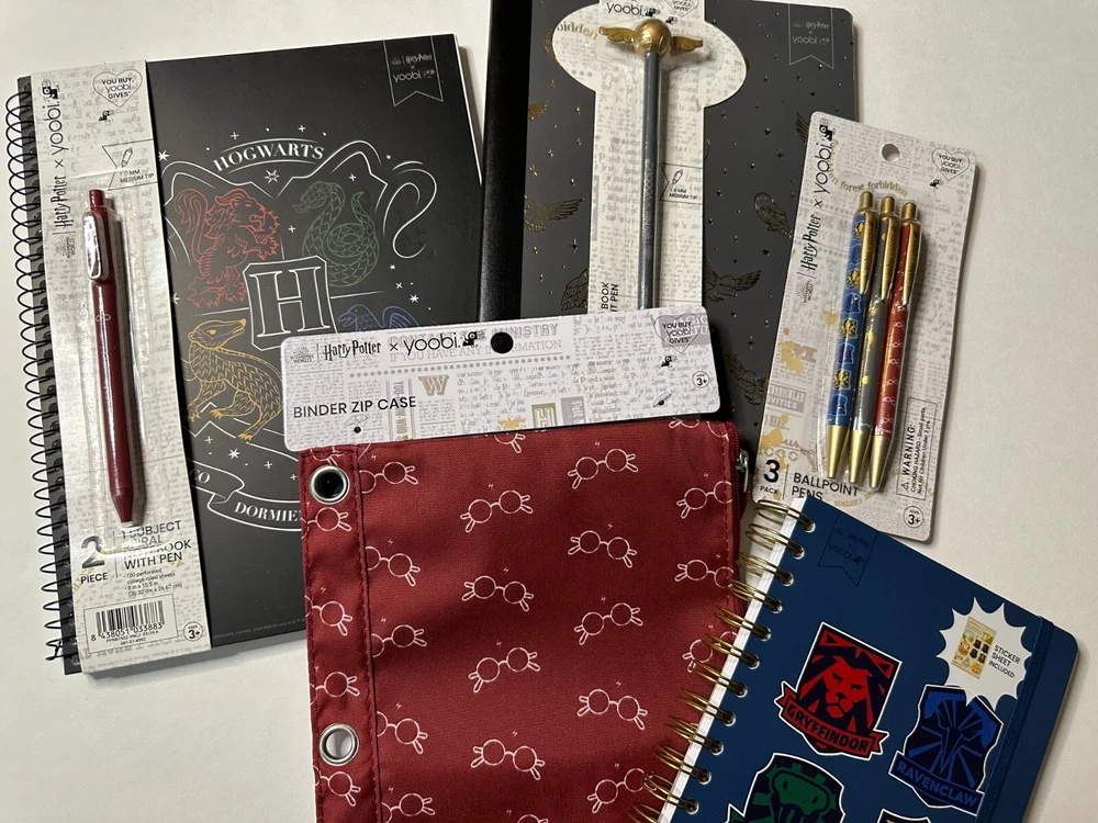 Stuck with a wizard fanatic on your shopping list this season? Presenting a megapack of rare, brand new and officially licensed stationery items which have resulted from an extended smash collaboration between philanthropic office supply company YOOBI and Warner Bros ' famed HARRY POTTER properties, including: NOTEBOOKS : · one-subject 100-sheet college-ruled composition book with the likenesses of owls and golden snitches on the front cover, bundled with a 1.0mm medium tip ballpoint pen with a golden snitch topper · one-subject 100-sheet college-ruled spiral notebook featuring a crest with the four houses of Hogwarts on the front cover, bundled with a 1.0mm medium tip click pen · one-subject 100-sheet college-ruled spiral 6" x 8" journal featuring icons representing the four houses of Hogwarts on the cover, as well as a sheet of Harry Potter -branded decorative stickers PENS / PENCILS : · 3-pack of 1.0mm medium-tip retractable ink pens – all of ink color black – adorned with images and iconography from the Harry Potter universe, including Harry's glasses ; the golden snitch ; and the crest symbols representing the four houses of Hogwarts MISCELLANEOUS OTHER STATIONERY : · 3-ring binder zip case featuring the icon of Harry's glasses repeated across both the front and back sides, perfect for carriage of pens, pencils, and other small school supplies Items contained herein are brand new, either in sealed packaging or, as applicable, with tags still attached, and have never been used. Each item is an officially licensed product of Warner Bros and Wizarding World , in collaboration with Yoobi. See photographs above for more visual information regarding the contents of this auction listing. Items pictured are exact items up for bid in this auction. Buyer agrees to pay within three days of auction closing; item will ship within one business day following valid payment. INTERNATIONAL BIDDERS ONLY - PLEASE NOTE: Because of the protections that it offers sellers, I will ONLY use eBay's Global Shipping Program to ship items to Canada and to all participating international destinations, and I will make NO exceptions to this policy for any reason, so please be clear about that fact before you decide to bid on and/or purchase this item. The GSP sets its own fees and shipping methods for the items it processes. I HAVE ZERO CONTROL over either the mail or the customs process, so PLEASE BE AWARE if you decide to bid on this item that extreme delivery delays may be possible. Please email me with any further questions, and please check out my other auctions! I will happily combine shipping, with deep shipping discounts on multiple items! Thanks for looking, and happy bidding!
