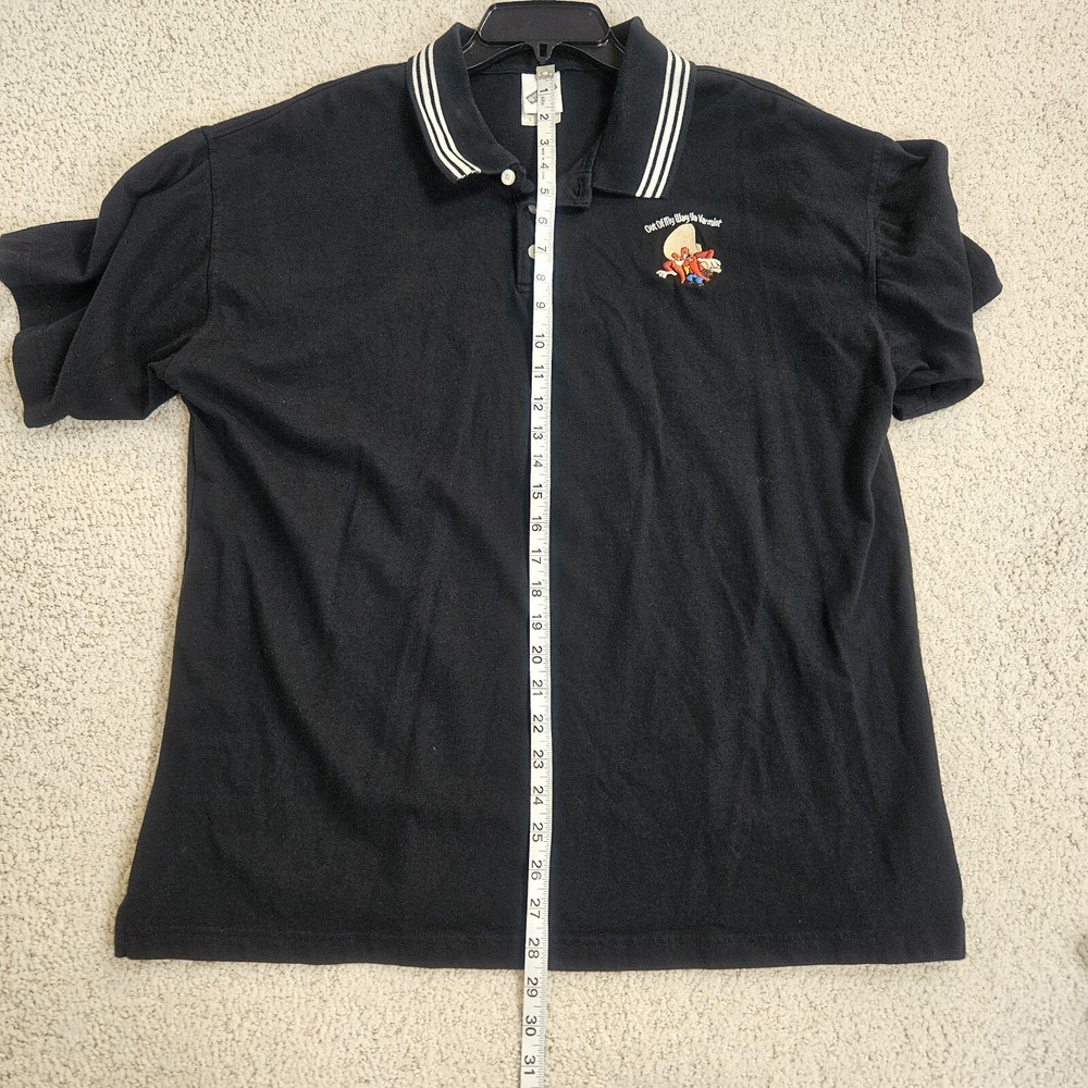 Yosemite Sam Warner Bros Black Embroidered Short Sleeve Polo Unisex Large "Get out of my way ya varmint" Embroidered on chest Good Pre-owned Condition