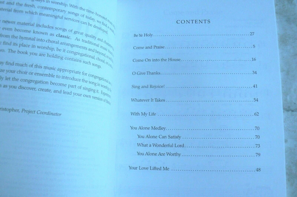 You Alone! ...Worthy of Our Praise Contemporary Choirs, Praise Singers, Worship Teams, Adult Ensembles, Youth Vocal Groups arranged by John DeVries Please see photos: There is a table of contents page, then some randomly selected pages to give you a sampling of what's inside. This 82-page softcover is in excellent condition with all pages crisp, clean, and sturdily bound; even the cover is nice and smooth. (My photos were taken a little late in the evening and it gives them a blue cast--they're perfectly white. :) You won't be disappointed! I'm listing MANY more books and other items. I'm happy to combine shipping. ~~~~~~~~~~~~~~~~~~~~~~~~~~~~ I normally mail ON the day I receive payment if it's received before 3 p.m. central time, and the next day if it's later than 3. Please take a look at my other listings; I'm listing many school books (and other items) and am happy to combine shipping! Items from smoke-free, pet-free home. Thanks so much for your time! Before leaving your feedback, if for any reason you feel I did not deserve or earn 5 stars in each category, please let me have the opportunity to make it right. I want every transaction to be 5-star worthy! Thanks so much! :)