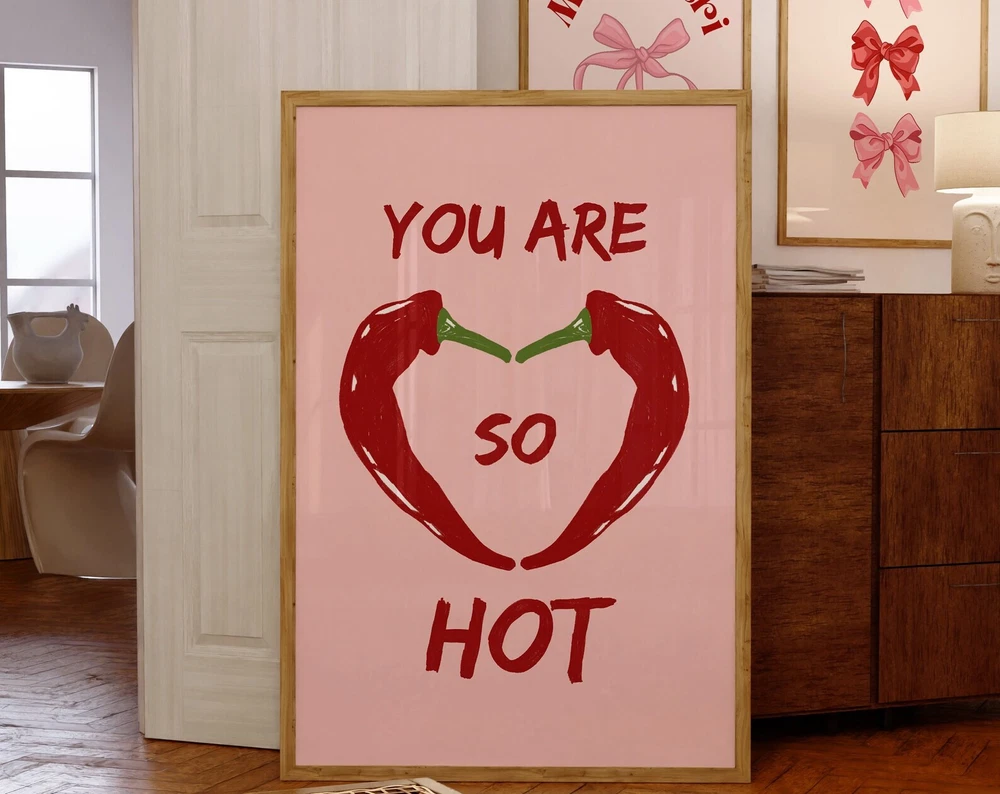 You Are So Hot Print Red Pepper Wall Art Modern Spice Kitchen Print Minimalistic Kitchen Art Trendy Dining Room Poster Chilli Poster Material: Premium luster photo paper Print type: Inkjet printing One side printed + The finish provides the highest possible resolution and color saturation + Lasts up to 200 years in color and 400 years in black-and-white + Printed on high-quality resin-coated photo base paper medium + Posters can be hung with double-sided tape, tacks, or framed + Hand washing with a gentle cry cloth is recommended for extended durability I will hand select the best choice of paper for your chosen design to ensure top quality results for a beautiful, bright and luxurious print. All prints are sealed in cellophane slips for protection during transportation, and are shipped in a protective cardboard envelope.