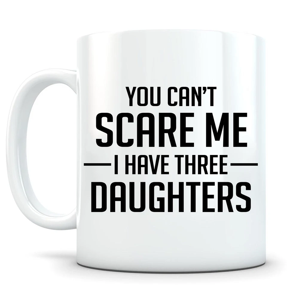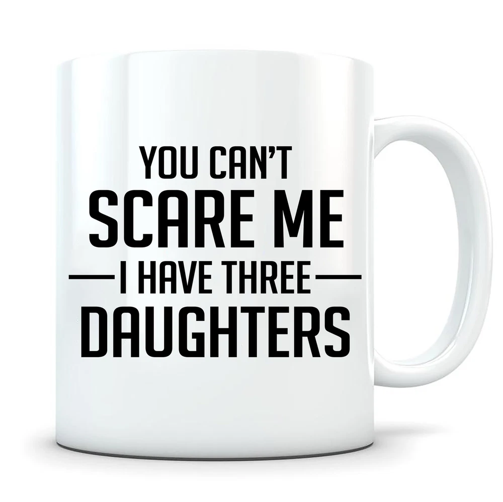 You Cant Scare Me I Have Three Daughters Mug Father Mother Gift Dad Gift From Product Details.. This high quality 11oz. ceramic white mug has a premium hard coat that provides crisp and vibrant color reproduction sure to last for years. Perfect for all hot & cold beverages. The highest quality printing possible is used. It will never fade no matter how many times you wash it. Material: 100% Ceramic. Print both sides. Dishwasher and Microwave Safe. High Gloss + Premium White Finish. Printed in the U.S.A. Personalized & Custom. We support personalized and custom mug to add custom, when placing an order, you can add notes to the "order note" in shipping address section. Also you can contact us directly via message. Shipping Info. Ready to ship in 1 to 2 business days, All products are made-to-order and proudly printed in the United States. Shipped by USPS and DHL, You will receive your order in 5-7 days. Replace & Refund. All products are defective during shipping broken, chipped will be replaced free of charge. You are not satisfied with the product, we will refund 100% money to you. If any other issues arise, please do not hesitate to message, we would be more than happy to assist you.