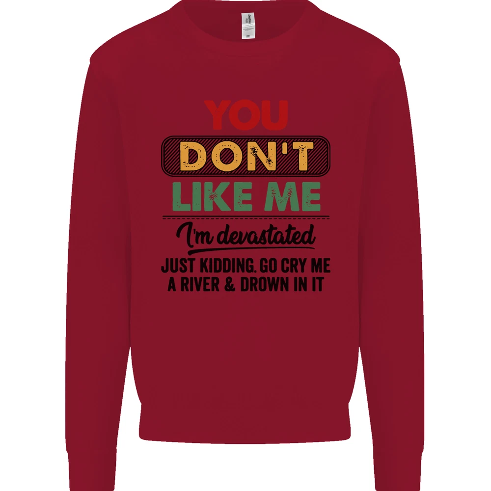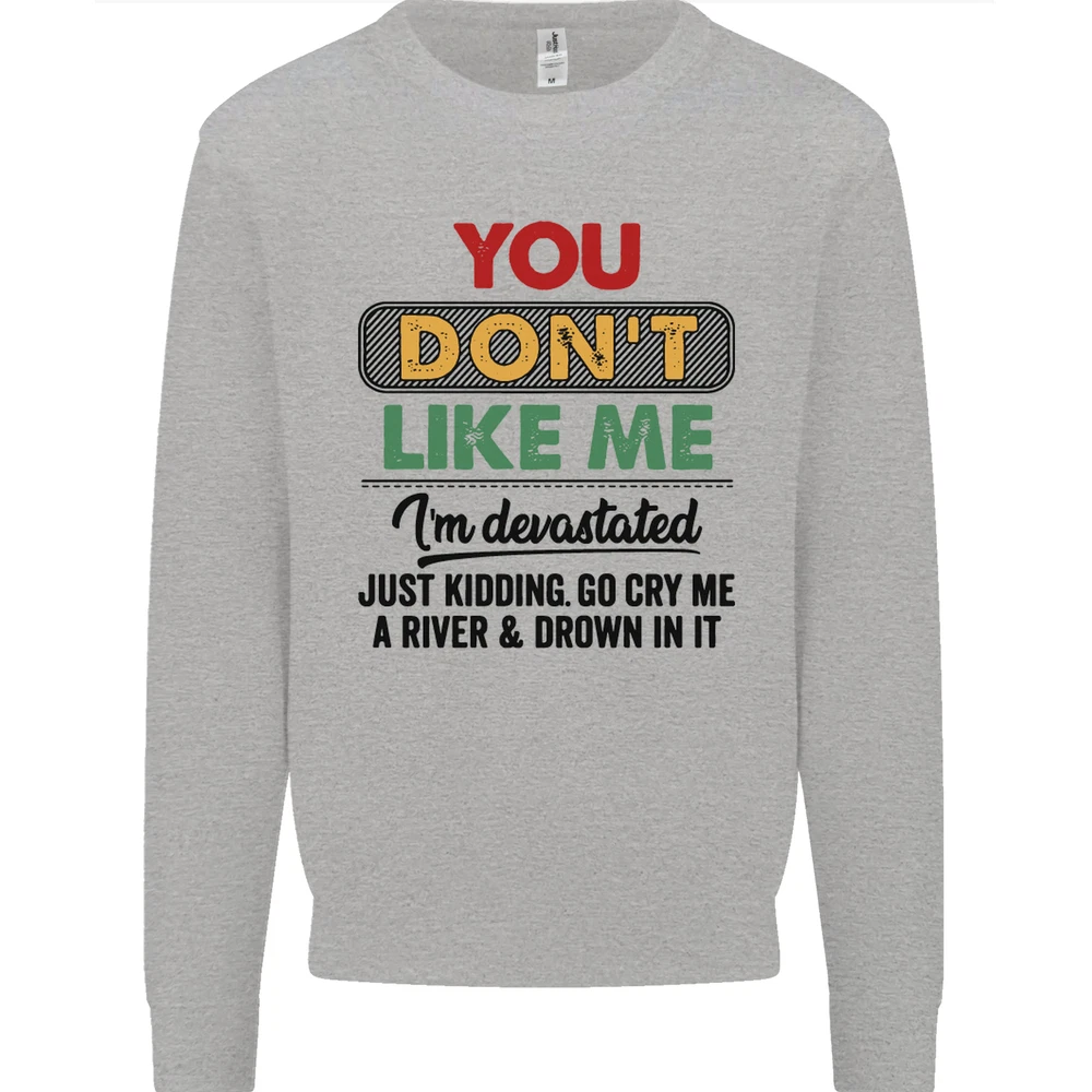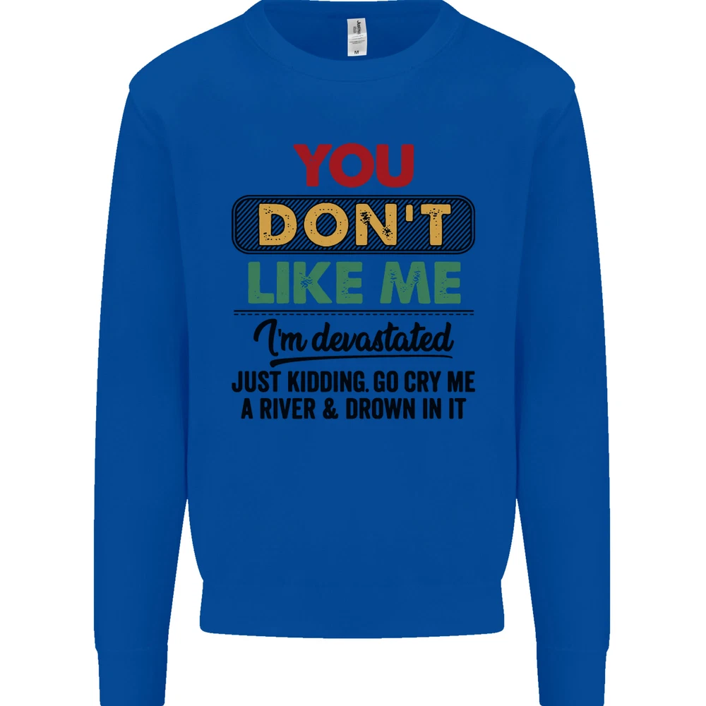 You Dont Like Me Funny Sarcastic Slogan Mens Sweatshirt Jumper Sizes: S 36" M 40" L 44" XL 48" 2XL 52" 3XL 56" 4XL 60" 5XL 64" Professionally printed onto an adults AWDis Sweatshirt (Sweat) JH030N 280gsm Unisex Twin needle stitching detailing Ribbed cuff and hem Soft cotton faced fabric creates ideal printing surface Printed with eco-friendly inks that are safe to the skin and children Worldwide Responsible Accredited Production (WRAP) certified production Training shoe with low-to-the-ground feel. Upper: Welded-TPU support overlays in the heel, toe cap and quarter. Dual mesh provides closed mesh in the lower quarter and breathable mesh throughout. Texture screened toe cap for protection. Description & Size Chart Adults AWDis Sweatshirt (Sweat) JH030 280gsm Unisex Twin needle stitching detailing Ribbed cuff and hem Soft cotton faced fabric creates ideal printing surface Worldwide Responsible Accredited Production (WRAP) certified production Printed with eco-friendly ink, which are safe to the skin and children. Alternative Styles This design (where appropriate), and many more like it, are available on the following styles: Best Selling Collections On the Darkside Birthdays Pets \ Animals Gym & Fitness Father's Day Sport Funny Biker Special Occasions Martial Arts LGBT Christmas Shipping All orders are shipped within one working day. Due to circumstances out or our control, or busy times of the year, this could be extended to two working days. Returns Returns are accepted within 60 days of delivery providing that the item is returned in the original condition and all tags are intact (where applicable) and has not been worn. Please ensure that the item is returned clean and free of pet hair. To return an item please use eBay's return system, which can be located by finding your order in your account and selecting the return option. eBay integration by