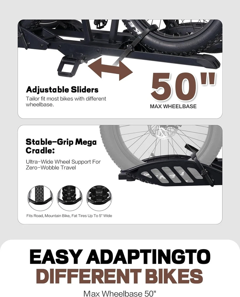 Young Hitch for Car - 200lb Capacity, Folding Design ‹ › ‹ › ‹ › ‹ › ‹ › ‹ › ‹ › ‹ › ‹ › ‹ › ‹ › Young Hitch for Car -200lb Capacity, Folding Design Key Features: Safety and Precision: Engineered with a 2-arm fix and anti-falloff 360° swirl structure for unparalleled security. Sturdy Construction: Patent-secured wheel cradles and anti-wobble structure keep your e-bikes stable, ensuring they remain firmly in place without swaying. Impressive Capacity: Designed to transport up to 200 pounds, easily accommodating two bikes weighing up to 100 pounds each. User-Friendly Design: Features a convenient lifting handle and folds compactly when not in use, making it ideal for storage or parking in a garage. Adaptable Cradles: Movable cradles adapt to a variety of bike lengths, perfect for electric bikes, mountain bikes, road bikes, and even kids' bikes. 2-Inch Hitch Receiver: Exclusively designed for vehicles with a 2-inch receiver, this rack is engineered for strength and minimal wobble. Effortless Installation: Arrives mostly pre-assembled for your convenience, with a locking mechanism featuring a robust M16 anti-wobble bolt. Complementary Accessories: A separate hitch lock is available for added security, and we recommend purchasing a ramp (not included) to ease loading and unloading. Why Choose the Young Hitch for Car? Elevate your biking adventures with the Young Hitch for Car—engineered for the discerning cyclist who values both safety and convenience. This folding design combines rugged performance with user-friendly features, making it the ultimate solution for transporting your e-bikes with ease. No more worrying about your bikes swaying or knocking against your vehicle. With safety features and intuitive design, it's made to accommodate a wide range of bike types and sizes. Experience a seamless blend of functionality and peace of mind with every journey you take. Order your Young Hitch for Car today and embrace the freedom of the open road! Shipping Free & Fast Shipping - We offer free shipping to most of the USA with a normal delivery time of 3-10 business days. However, due to various situations, additional delivery time (up to 3 weeks) may be required for some items. Alternative Carriers - We may use alternative carriers (e.g. USPS, FedEx, UPS, etc.) to ensure your package arrives safely and on time. Due to the use of multiple carriers, we are unable to provide a tracking number automatically. Handling Time - Orders are processed and shipped within 1-5 business days of receiving cleared payment. Shipping Restrictions - Shipping to Alaska, Hawaii, Puerto Rico, Guam, and other US territories may incur shipping charges or delivery restrictions. Please contact us before ordering, or your order can be refunded/cancelled. State Restrictions - There may be restrictions based on your state of purchase. For example, certain items may not be shipped to California due to state regulations. Contact for Tracking Updates - If you require tracking updates or have any concerns about the delivery of your order, please feel free to contact us, and we will be happy to assist you. Return 30-Day Hassle-Free Returns - We want you to be completely satisfied with your purchase. If you are not, you can return the item within 30 days of receiving it for a full refund or exchange. Easy Return Process - To start a return, simply contact us and we will provide you with a prepaid return shipping label and detailed instructions. Restocking Fee - There are no restocking fees for returns. However, the buyer is responsible for return shipping costs if the return is not due to a seller's error. Refund Processing Time - Refunds will be processed within 5 business days of receiving the returned item in its condition. Payment We accept all major credit cards, PayPal, and Apple Pay for your convenience. Your payment information is secure and encrypted to ensure a safe and seamless transaction. Please complete your payment within 3 days of purchase to avoid any delays in shipping. Feedback Your feedback is extremely important to us. We strive to provide the best products and customer service possible. If you are satisfied with your purchase, please take a moment to leave us a positive review. If you have any concerns or issues with your order, please contact us before leaving negative feedback. We are committed to resolving any problems and ensuring your satisfaction. Contact Us If you have any questions or concerns, please feel free to out to our customer support team. You can contact us through the eBay messaging system. We are available Monday to Friday, 9:00 am to 5:00 pm EST, and we will do our best to respond to your inquiry within 24 hours. Buy it now and enjoy a pleasant shopping experience! Item Weight: 58 pounds Unit Quantity: 2 Rack Type: Bike Features: Anti-Theft Lock,Protective Padding,Rust Free,Anti-Wobble,Heavy Duty,Smart Tilting,One Hand Folding Capacity: 2 Mounting Type: Hitch Mount Color: Black