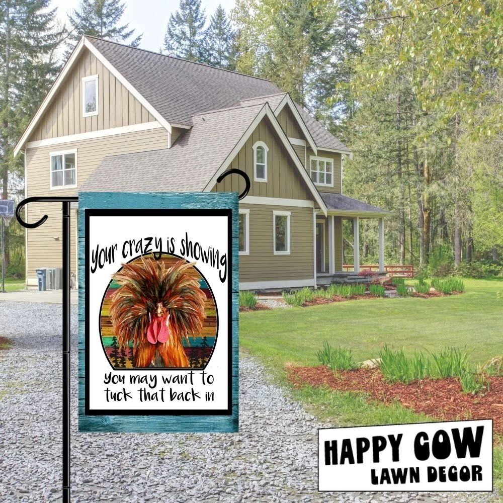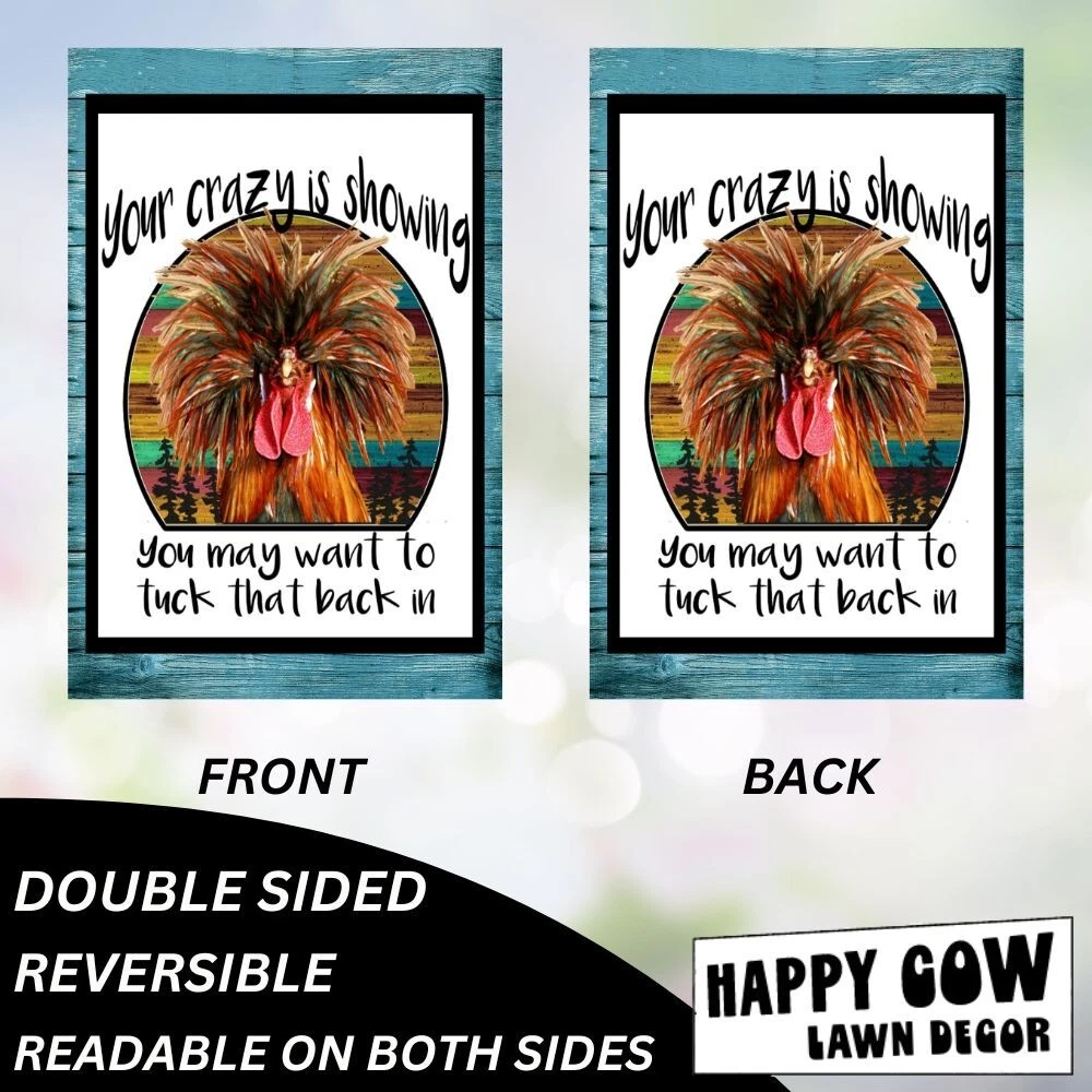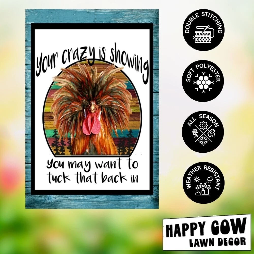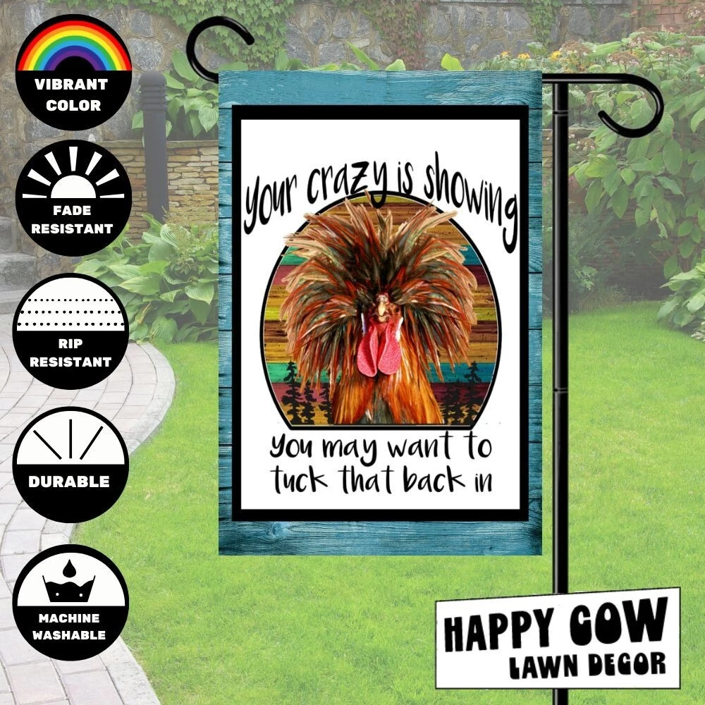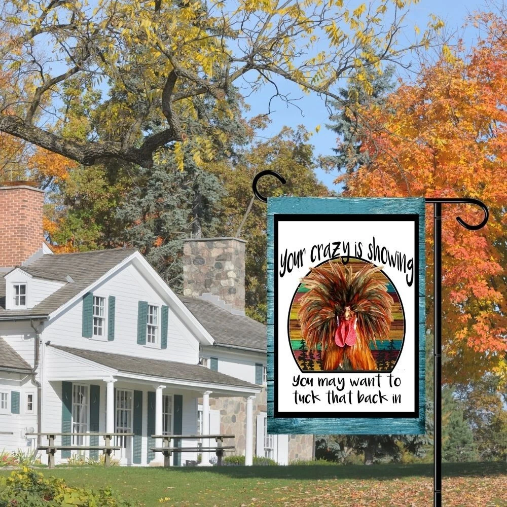 Your Crazy is Showing Chicken Garden Flag Fade Resistant & True Colors – This flag retains its vibrant colors even with prolonged sunlight, ensuring it looks just like the product image. Double-Sided Print for Maximum Visibility – Each side of this flag features a high-quality print, making it visible and decorative from all angles in your yard or garden. Built for Harsh Weather Conditions – Made from a durable, weather-resistant material, this flag is designed to withstand outdoor, from direct sun to heavy rain and wind. Convenient Seasonal Storage – While the flag is built for durability, we recommend storing it in a cool, dry place when not in use to prolong its life and preserve its colors. Compatible with Standard Flag Stands – This 12x18-inch flag fits most garden flag poles, stakes, and stands, making it easy to install and perfect for decorating your yard, lawn, or patio. (Pole not included) This is a top quality flag. It will last for years and years. If you have any questions, please mail us before purchase. We are ALWAYS happy to combine items for shipping. Shipping for the first flag is $3.95. Additional flag purchase ship free as long as your ENTIRE purchase is made with ONE PAYPAL PAYMENT. Flags are returnable as long as they have not been opened. All of our items come from a smoke free office. Thank you!