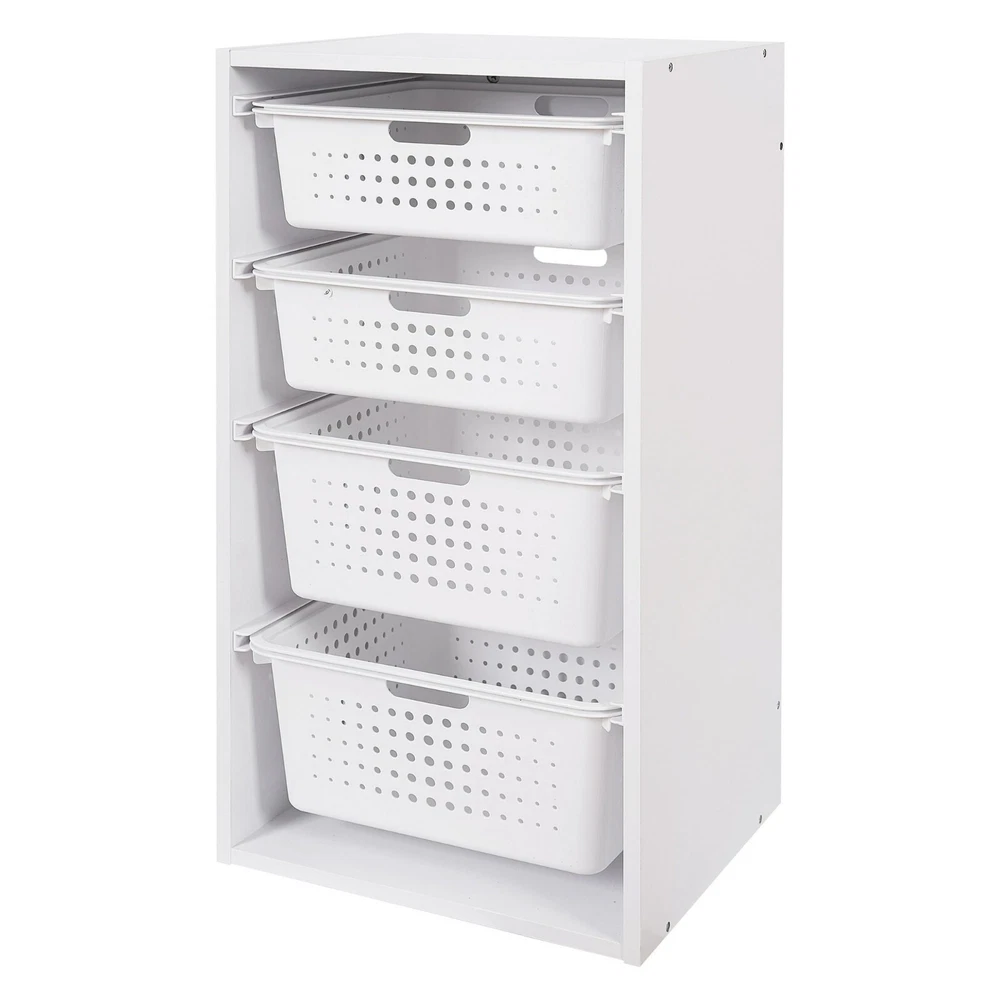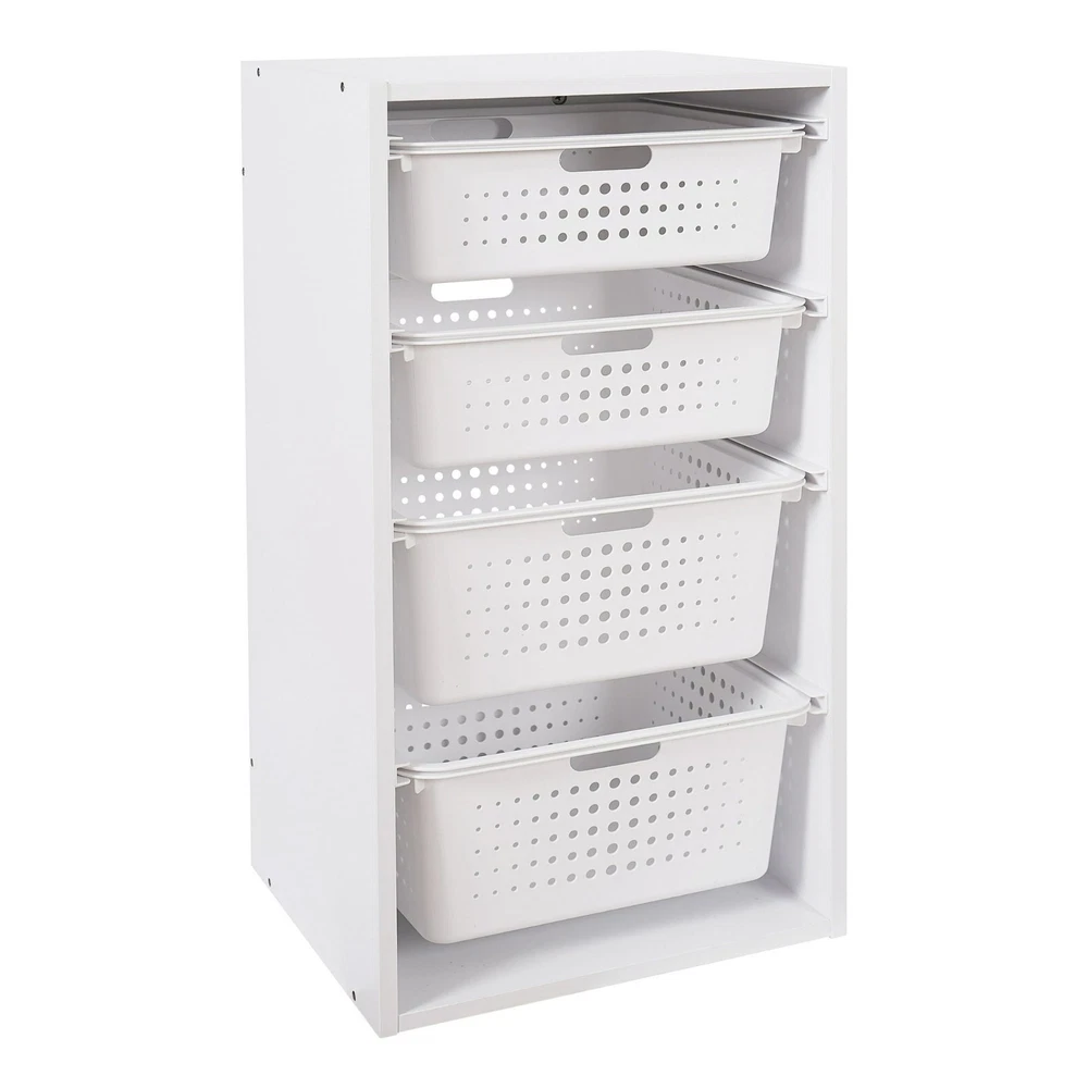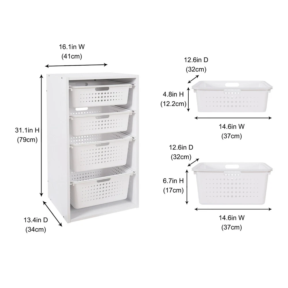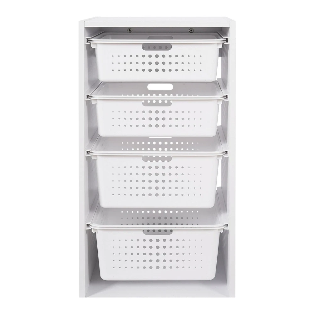 Your Zone Sliding Bin Organizer with 4 plastic storage bins gives you everything you need to create a cute, clutter-free space! Designed to be the perfect kid-sized height, it allows your child to clearly view and select their favorite toys and makes it easy for them to clean up when they're done playing. The white color adds a clean sense of style, it is suitable for any decorations of children's rooms, playrooms and bedrooms, foyers and family rooms. The 2 small and 2 large white storage containers are easy to remove and replace along the sliding rails, Removable toy storage bins for playtime and easy clean up Product dimensions: 16.1in W x 13.4in D x 31.1in H, Small bin: 14.6W x 12.6D x 4.8H,Big bin: 14.6W x 12.6D x 6.7H Assembled product weight: 27.55lbs Sturdy engineered wood construction frame with plastic rails,and 4 plastic bins Easy assembly, plastic rails pre-assembled Wall anchors provides additional safety support Great for keeping children's toys, books, shoes, games, arts, crafts and other items stored away and easy to find Makes an ideal storage unit any kid's room, play room, guest room, spare room, classroom, and more Packing dimensions: 15.9in W x 12.6in D x 36.0in H Packing weight: 33.29lbs Brand Your Zone Recommended Use Cat Toys, Dog Toys Recommended Room Living Room, Home Office Material PB, Plastic Color White Finish Textured Number of Compartments 4 Count 1 Volume Capacity 4 Shape Rectangle Features Stacking Theme Storage Pattern Modern Age Group Child Assembled Product Weight 25.3 lb Maximum Load Weight 55 lb Is Assembly Required Y Manufacturer Part Number YZ54100111691WT Model YZ54100111691WT Assembled Product Dimensions (L x W x H) 13.40 x 16.10 x 31.10 Inches