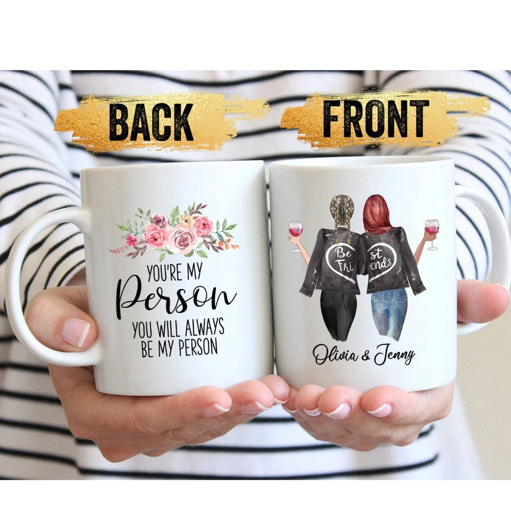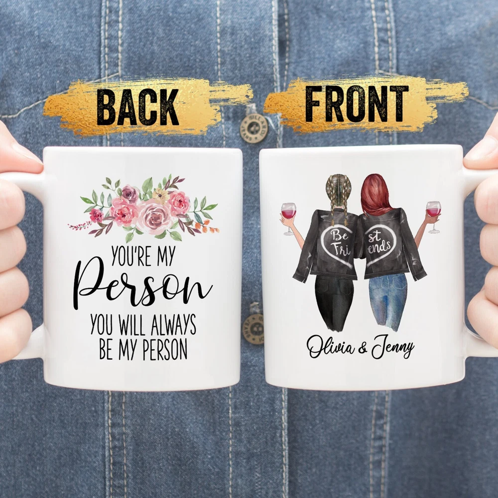 You're My Person Custom Girls On Mug Personalized Best Friend Gift Best Friend Product Details.. This high quality 11oz. ceramic white mug has a premium hard coat that provides crisp and vibrant color reproduction sure to last for years. Perfect for all hot & cold beverages. The highest quality printing possible is used. It will never fade no matter how many times you wash it. Material: 100% Ceramic. Print both sides. Dishwasher and Microwave Safe. High Gloss + Premium White Finish. Printed in the U.S.A. Personalized & Custom. We support personalized and custom mug to add custom, when placing an order, you can add notes to the "order note" in shipping address section. Also you can contact us directly via message. Shipping Info. Ready to ship in 1 to 2 business days, All products are made-to-order and proudly printed in the United States. Shipped by USPS and DHL, You will receive your order in 5-7 days. Replace & Refund. All products are defective during shipping broken, chipped will be replaced free of charge. You are not satisfied with the product, we will refund 100% money to you. If any other issues arise, please do not hesitate to message, we would be more than happy to assist you.