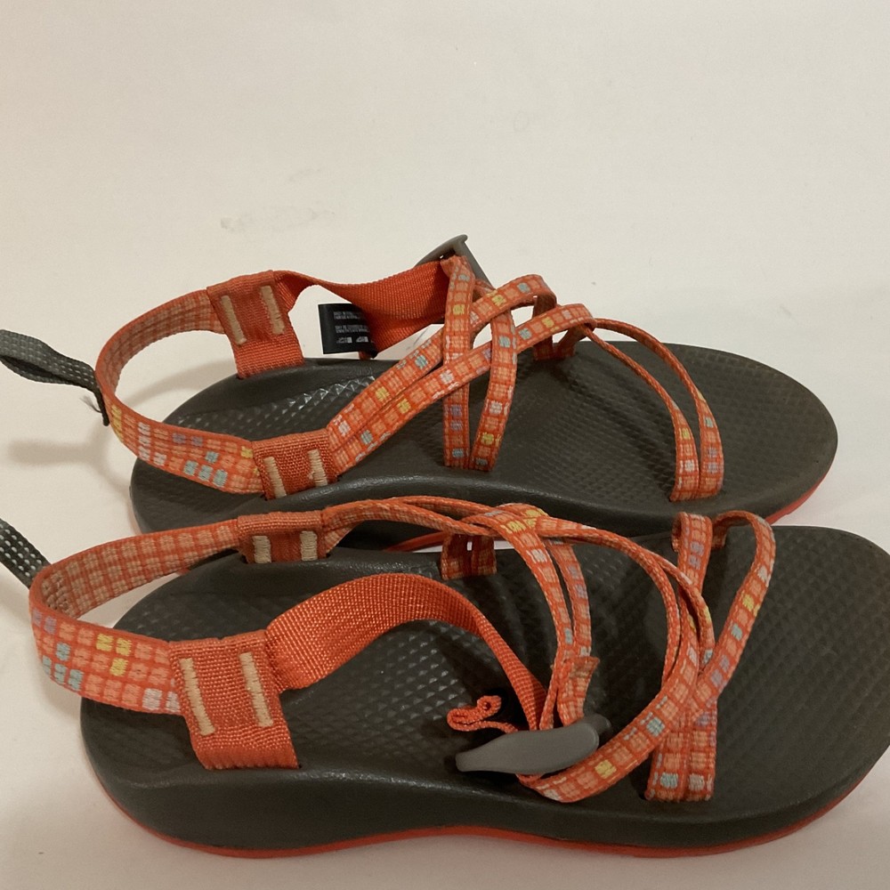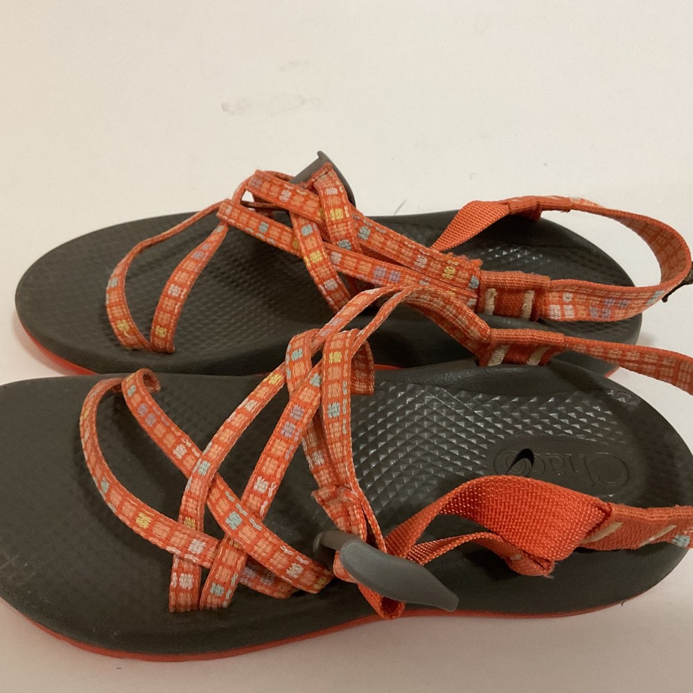 The Youth Chacos ZX1 Adjustable Sandals in size 5 are perfect for outdoor activities such as hiking and water sports. These orange sandals feature a buckle closure, rubber outsole, and adjustable straps for a secure fit. Designed for both boys and girls, these strappy sandals by Chaco are ideal for kids who love the outdoors and staying active. The standard shoe width ensures comfort during long days of adventure.
