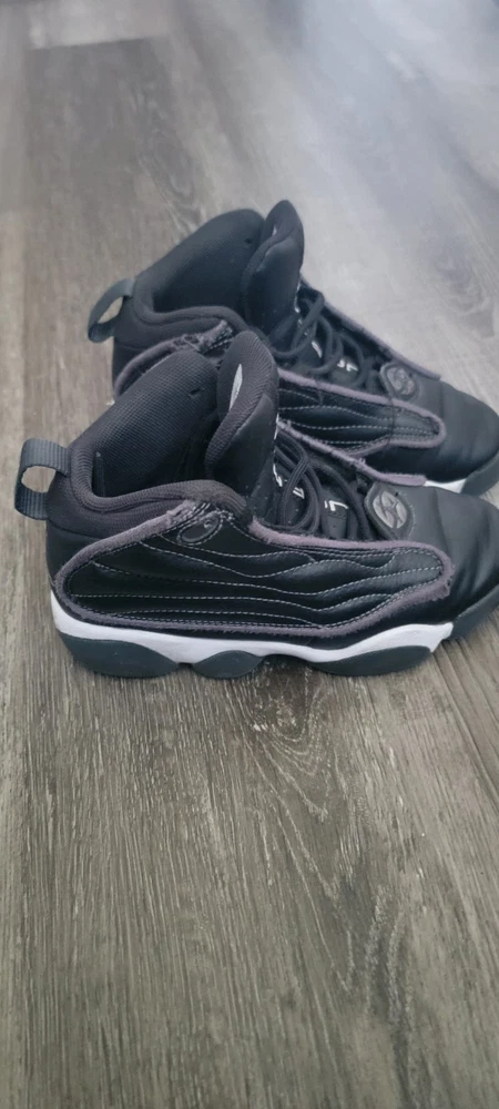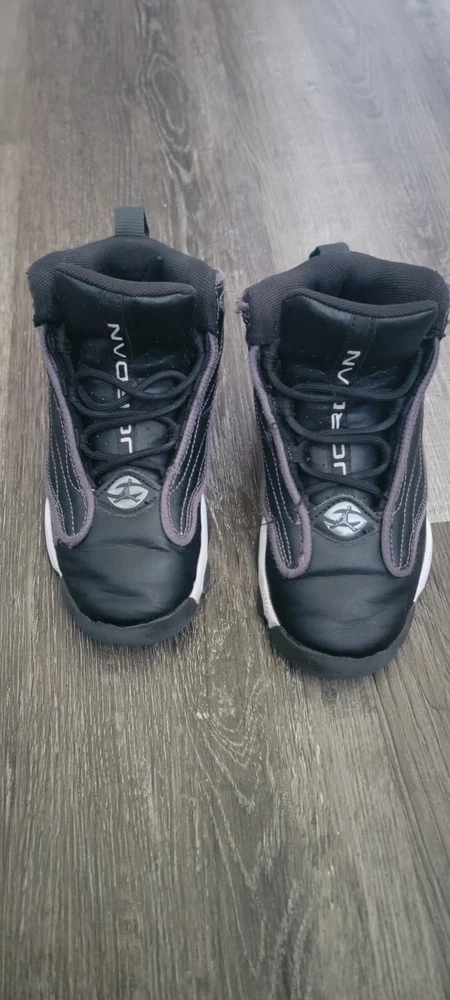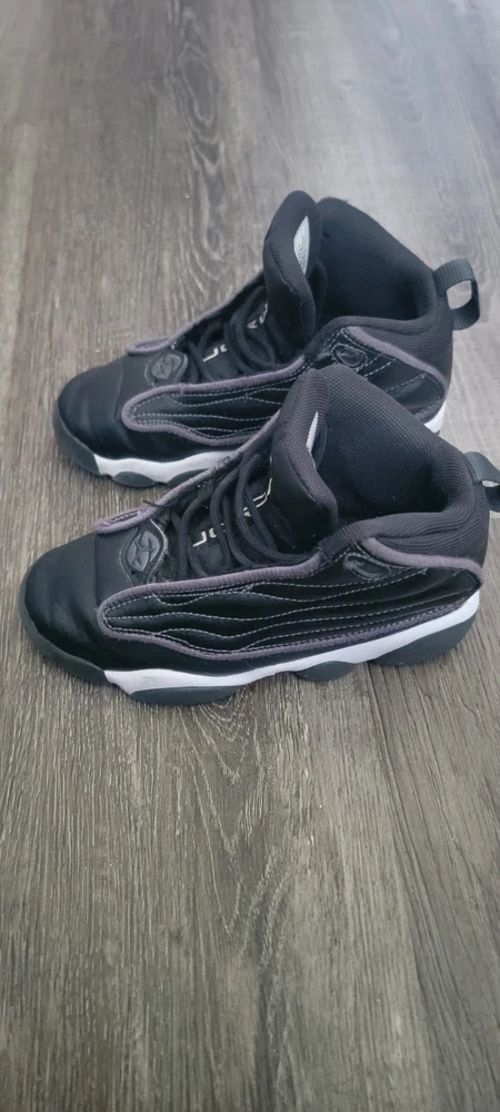 The product is a pair of Youth Jordan sneakers in a sleek black color. It is designed for boys with a US shoe size of 13, AU shoe size of 13, and UK shoe size of 12.5. This athletic-style sneaker is part of the Air Jordan product line, known for their quality and style. Perfect for active kids who want a comfortable and trendy pair of shoes, these Jordans in size 13 are sure to be a hit with any young sneaker enthusiast.